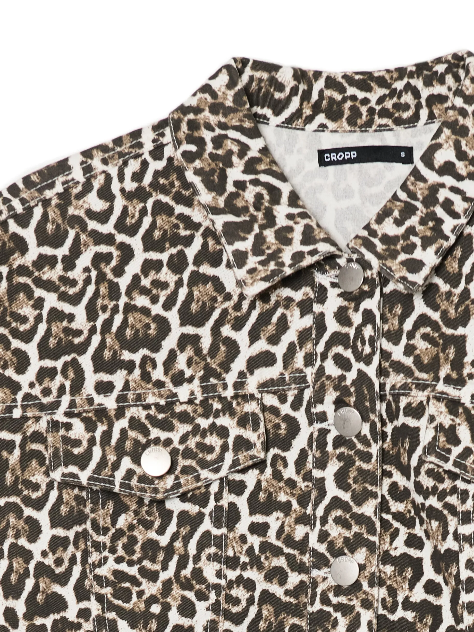 Koszula damska o krótszym kroju, uszyta z mocnej, bawełnianej tkaniny typu twill. Nadruk z modnym motywem w panterkę na całej powierzchni materiału wyróżni Cię w tłumie. 100% bawełny prosty krój z przodu jednorzędowe zapięcie na guziki kołnierz z wąskimi klapami długie rękawy zapinane na guziki dwie zapinane kieszenie piersiowe okryte patkami zwierzęcy wzór Wzrost modelki: 177 cm