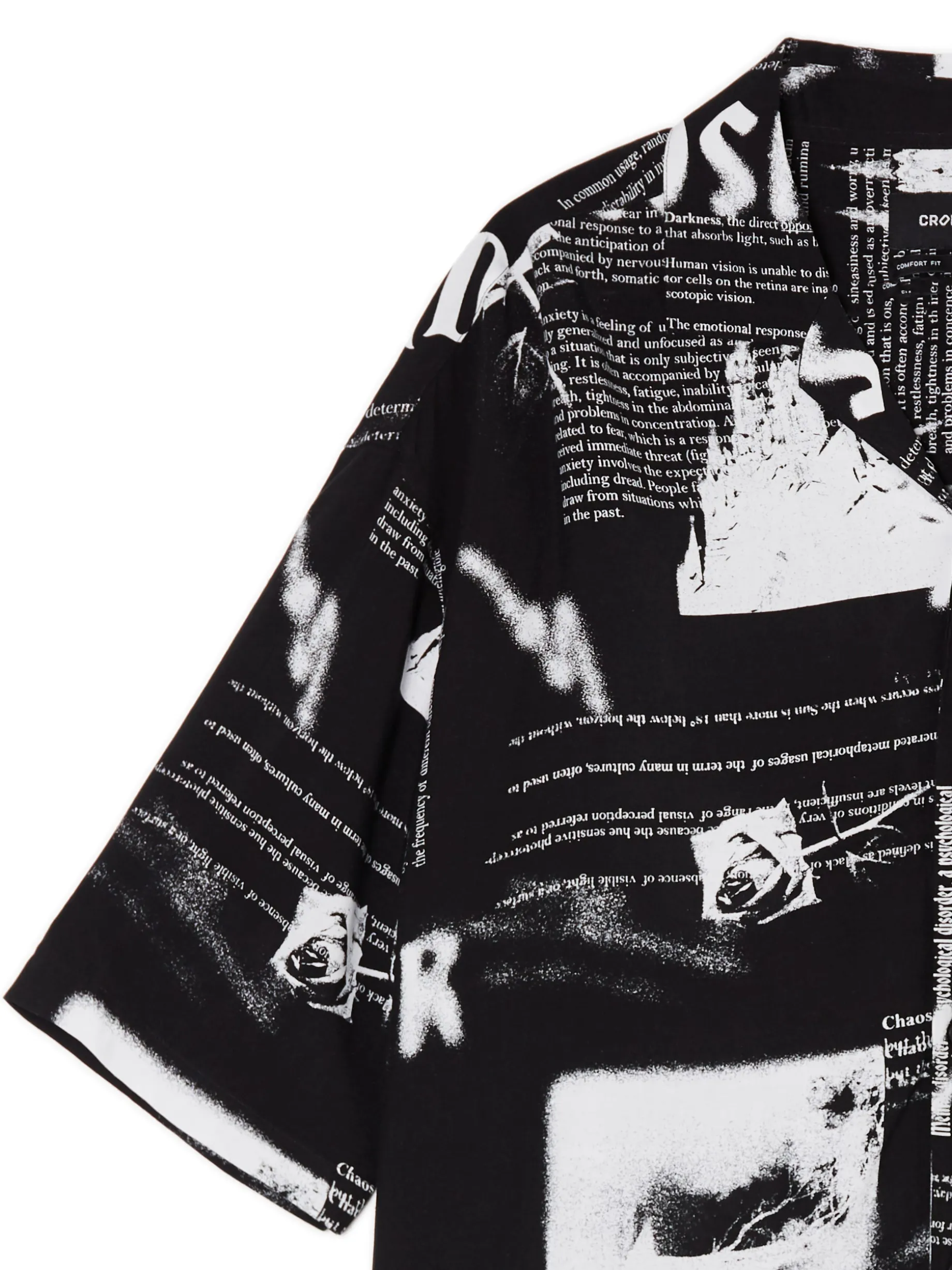 Męska czarna koszulka regular fit ze wzorzystym printem idealnie pasuje zarówno na wyjście do miasta, jak i bardziej formalnych miejsc. lekki, zwiewny materiał luźny krój z kołnierzykiem krótkie, wygodne rękawy Model prezentuje produkt w rozmiarze M. Wzrost modela: 185 cm