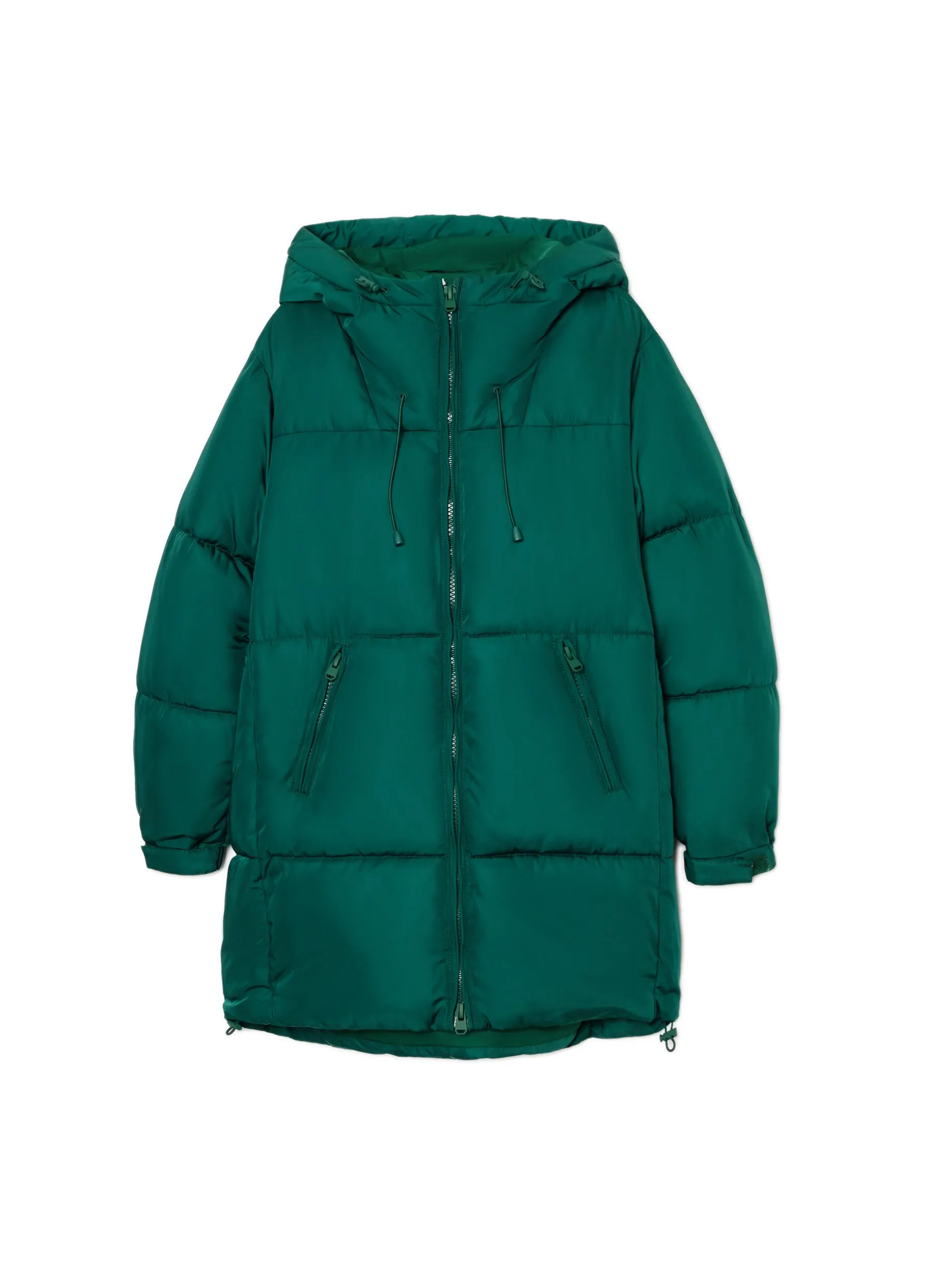 W życiu warto zachować balans. Oprócz nieszablonowych outerwearów na sezon przejściowy, proponujemy także nasze klasyki. Ten damski pikowany płaszcz o regularnym kroju uszyty z trwałej tkaniny, będzie idealnym dodatkiem do Twoich stylizacji. długi pikowany płaszcz typu puffer pikowanie na całości regularny krój miękka polarowa poszewka zapięcie na podwójny zamek praktyczny kaptur ze stójką, regulowany gumką ze stoperami tunel pod dekoltem z dekoracyjnymi troczkami długie rękawy z regulowanymi mankietami kieszenie boczne z zamkami dół wykończony gumką ze stoperami