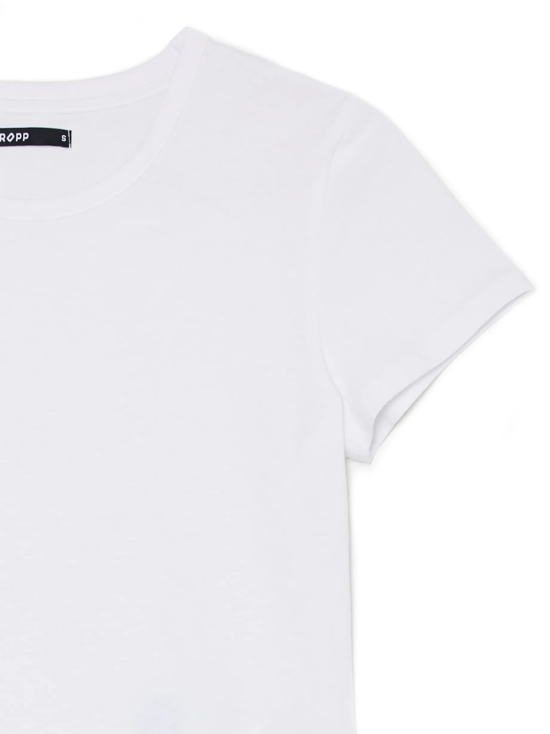 Dwupak gładkich białych koszulek, uszytych z dzianiny o bardzo wysokiej zawartości bawełny.