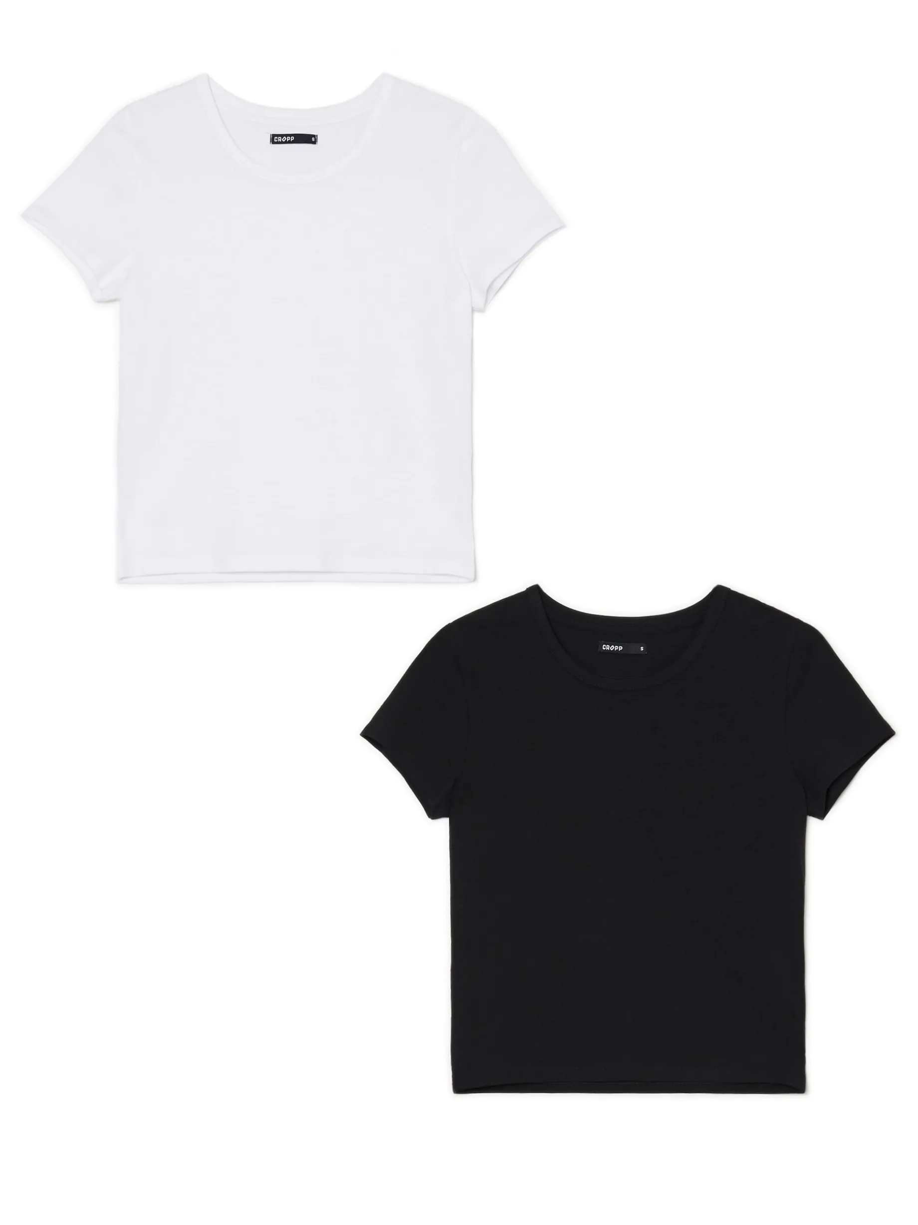 Dwupak dopasowanych koszulek damskich, uszytych z dzianiny o wysokiej zawartości bawełny. W zestawie jedna koszulka biała i jedna czarna.