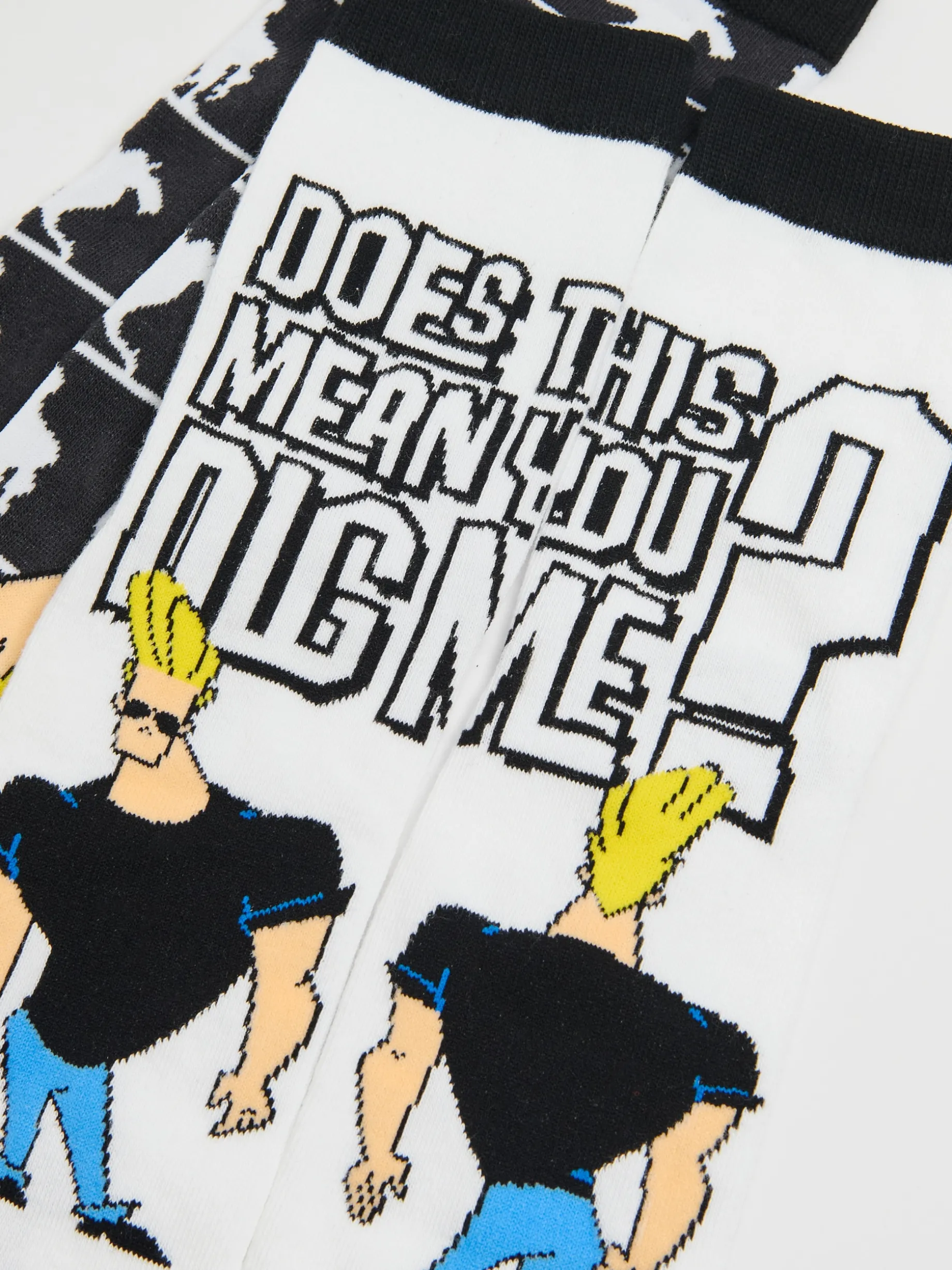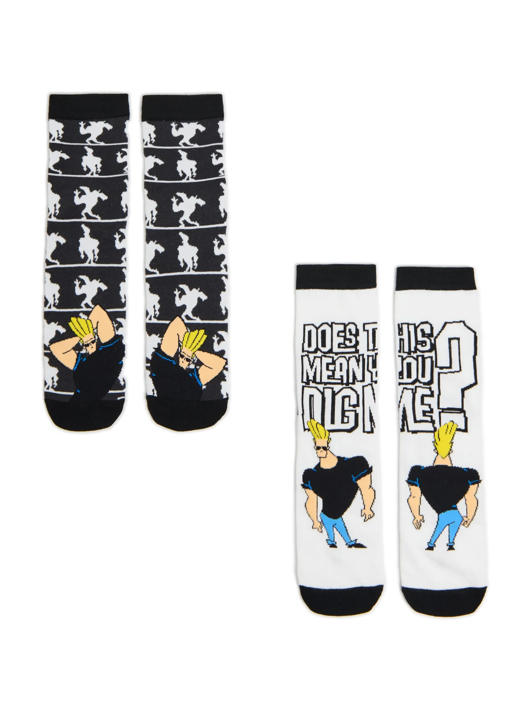 Zestaw dwóch par długich męskich skarpet, uszytych z elastycznej mieszanki dzianiny o dużej zawartości bawełny. Na każdej z nich motyw z serii Johnny Bravo, więc śmiało możesz je miksować! dzianinowy materiał z bawełną dłuższy, prosty krój nadruk z postacią z kultowej kreskówki Cartoon Network © & TM Cartoon Network. (s24)