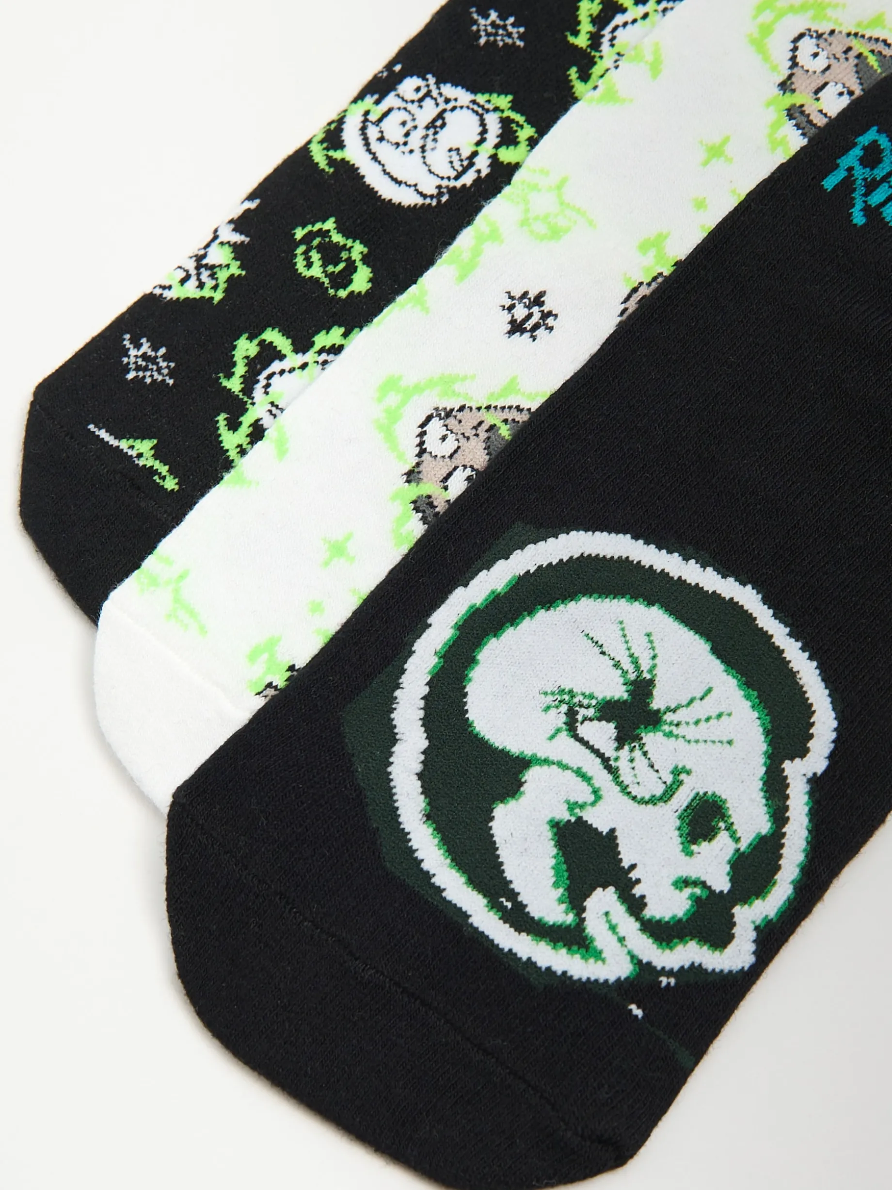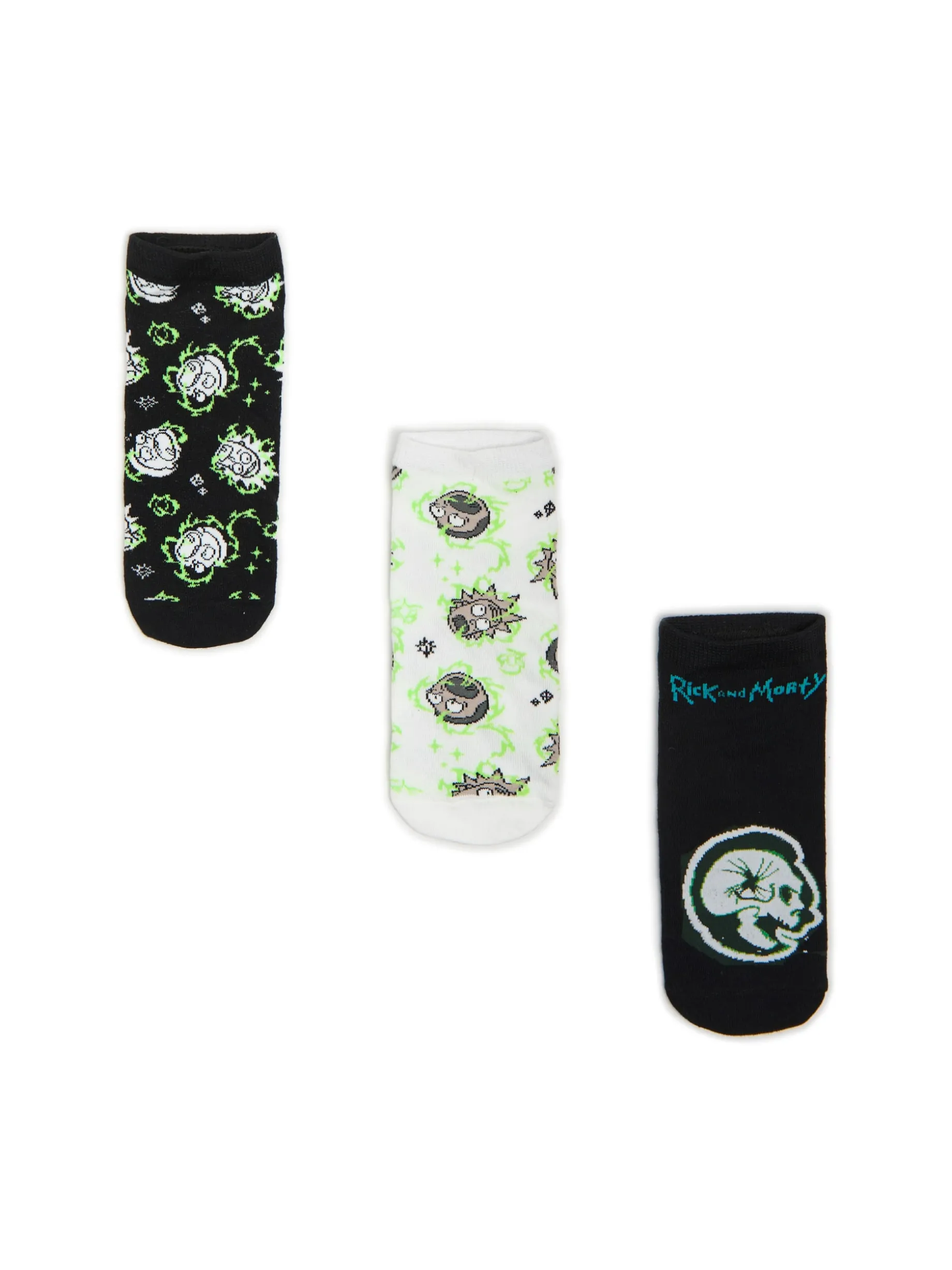 Zestaw 3 par męskich skarpet typu stopki, uszytych z mieszanki dzianin w stonowanych kolorach. Na każdej licencjonowany nadruk z serii Rick i Morty. Miksuj dowolnie! dzianinowy materiał z bawełną krótki krój nadruk z bohaterami serialu Rick and Morty RICK AND MORTY and all related characters and elements © & TM Cartoon Network. WB SHIELD: © & TM WBEI. (s24)
