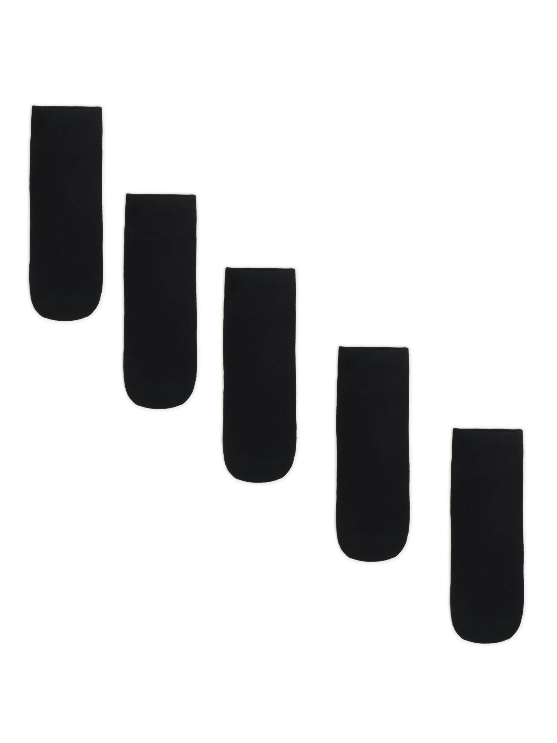 Pięciopak męskich krótkich skarpetek w kolorze czarnym. Uszyte z dzianiny o wysokiej zawartości bawełny.