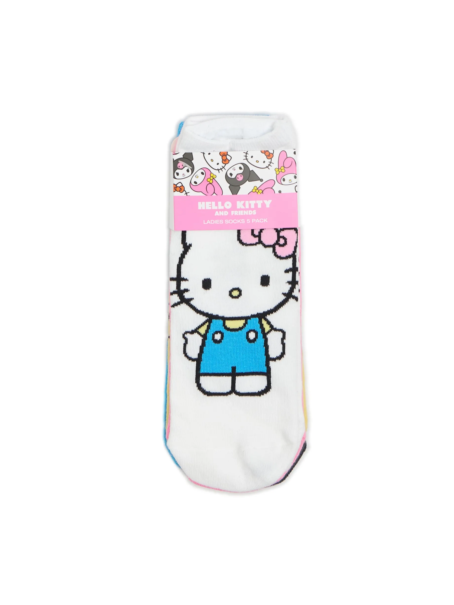 Zestaw pięciu par damskich skarpetek typu stopki z postaciami z serii Sanrio. Hello Kitty, My Melody, Kuromi, Pompompurin, Cinnamoroll – nie musisz wybierać, miksuj dowolnie! dzianinowy materiał z bawełną krótki krój nadruki z postaciami serii Sanrio © 2024 SANRIO CO., LTD.