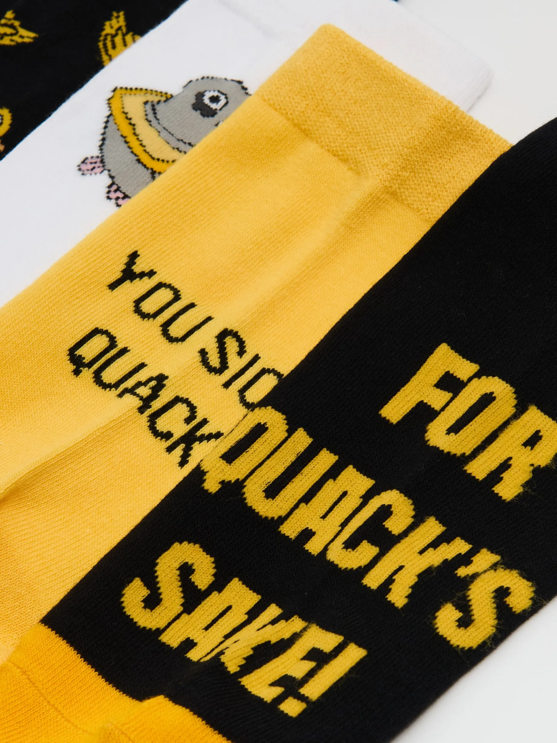 Zestaw pięciu par męskich, długich skarpet uszytych z przyjemnej w dotyku mieszanki dzianin. Na każdej parze inny gatunek ptaka – kaczka, gęś, gołąb. Miksuj dowolnie! dzianina z domieszką elastycznych włókien dłuższy, prosty krój nadruk all over brandowy nadruk