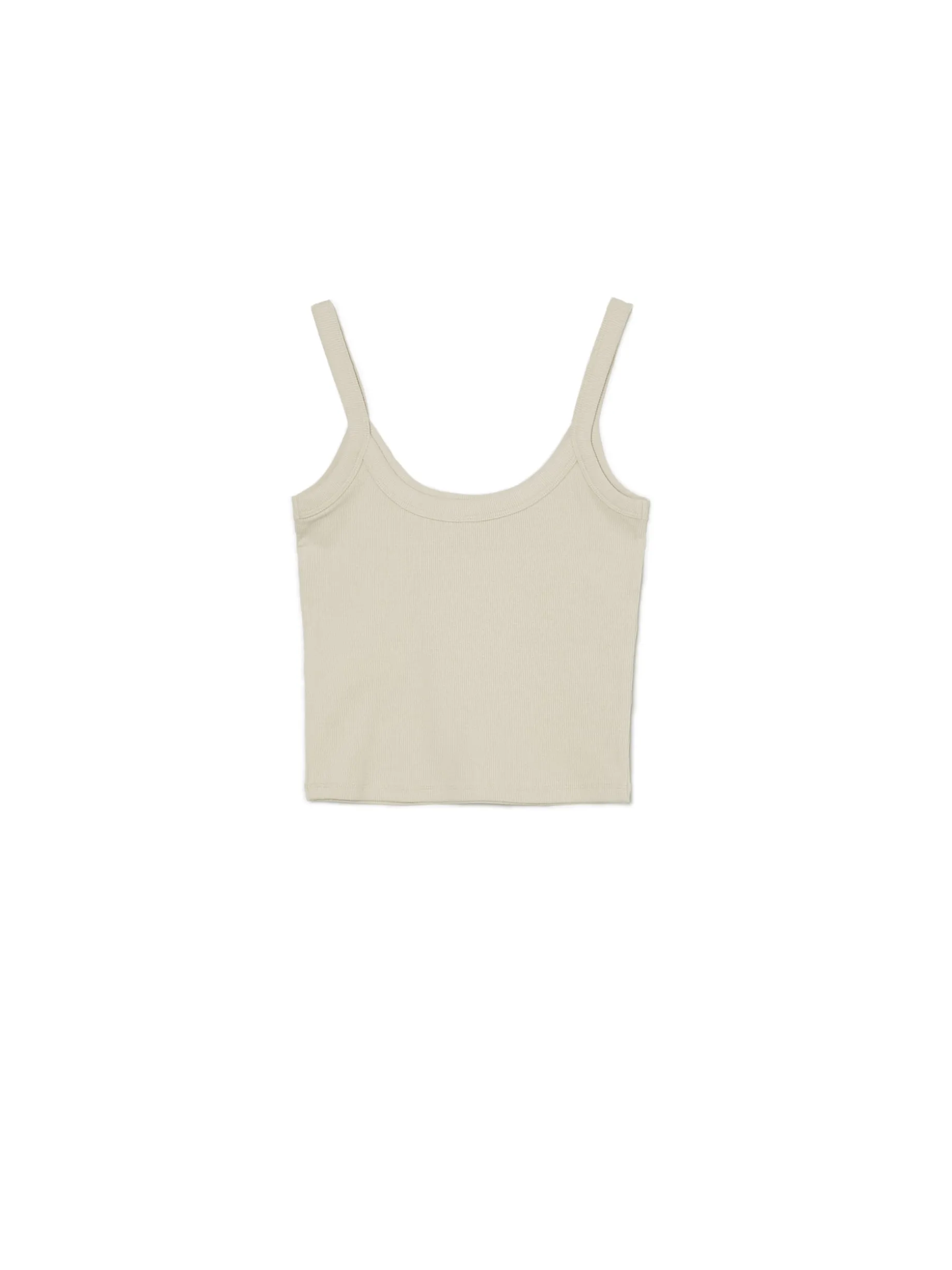 Damski top w stonowanym, gładkim kolorze na ramiączkach. Ta prążkowana dzianina o dopasowanym kroju podkreśli Twoją sylwetkę! elastyczna, prążkowana dzianina koszulka typu basic cienkie ramiączka okrągły dekolt z lamówką dostępne inne warianty kolorystyczne Wzrost modelki: 172 cm