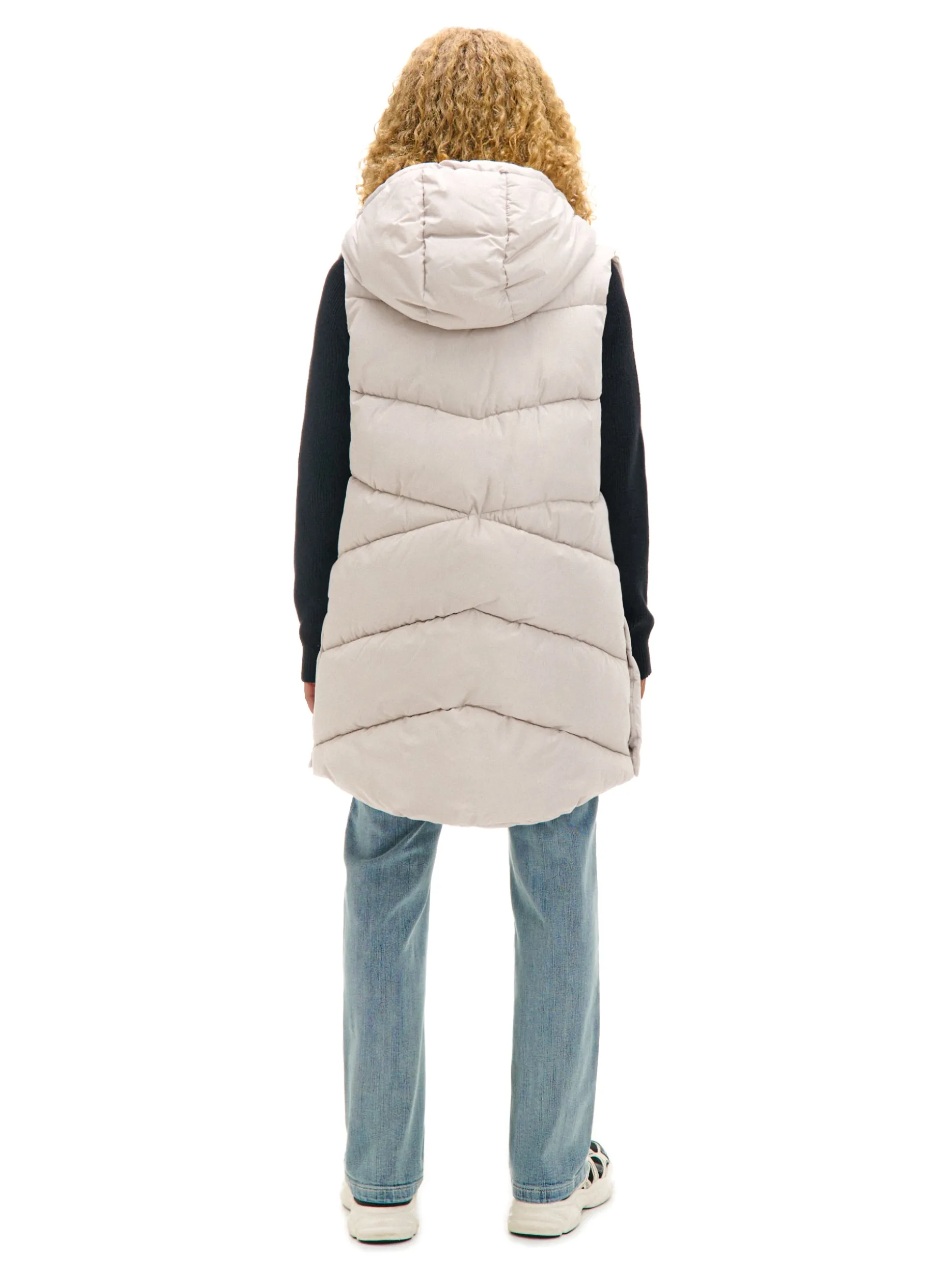 Kamizelka damska typu puffer uszyta z miękkiej i trwałej tkaniny. Lekkie ocieplenie wewnątrz otuli Cię w chłodne wieczory. Sprawdź! pikowana kamizelka o regularnym kroju uszyta z gładkiej tkaniny wewnątrz lekkie ocieplenie i podszewka zapięcie na zamek i zatrzaski ukryte pod listwą praktyczny kaptur, regulowany gumką ze stoperami wysoka stójka kieszenie boczne z zamkami