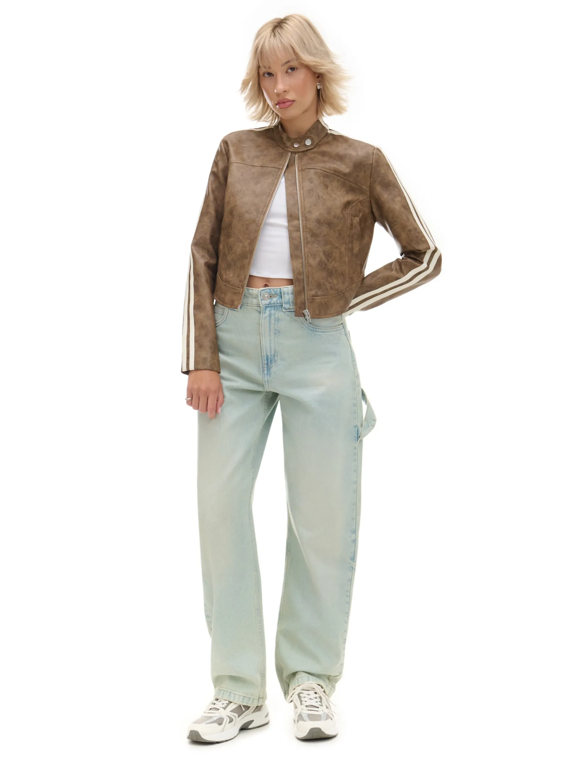Beżowa kurtka biker