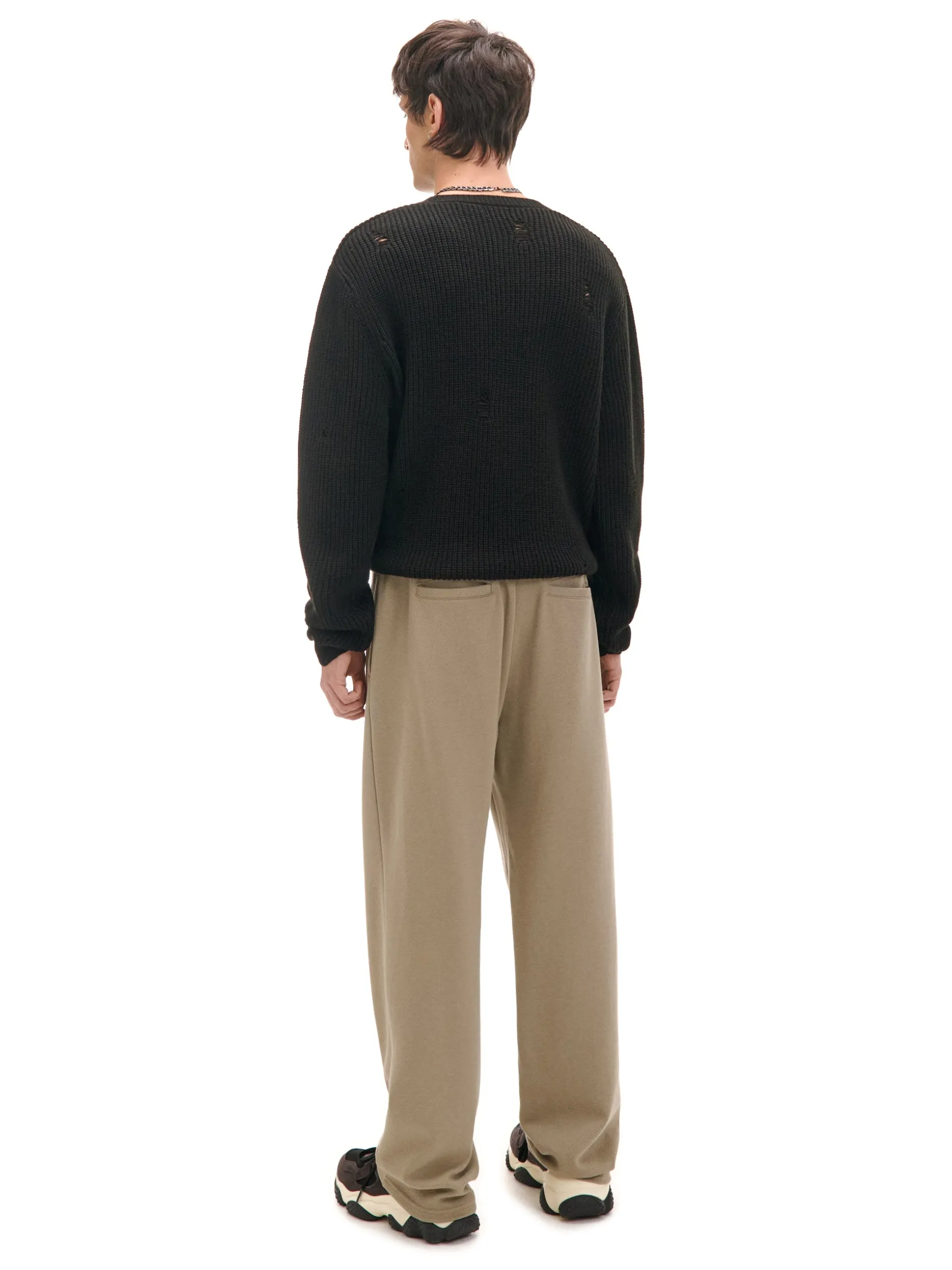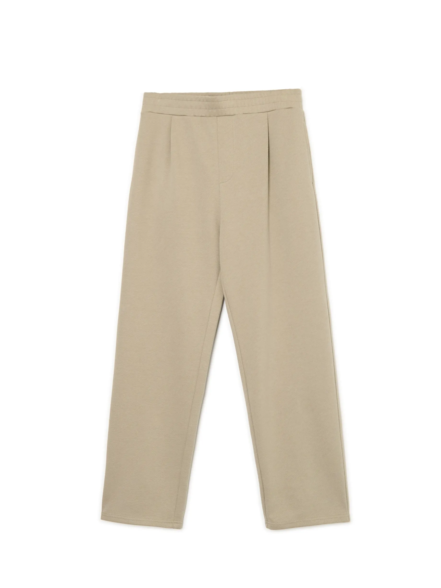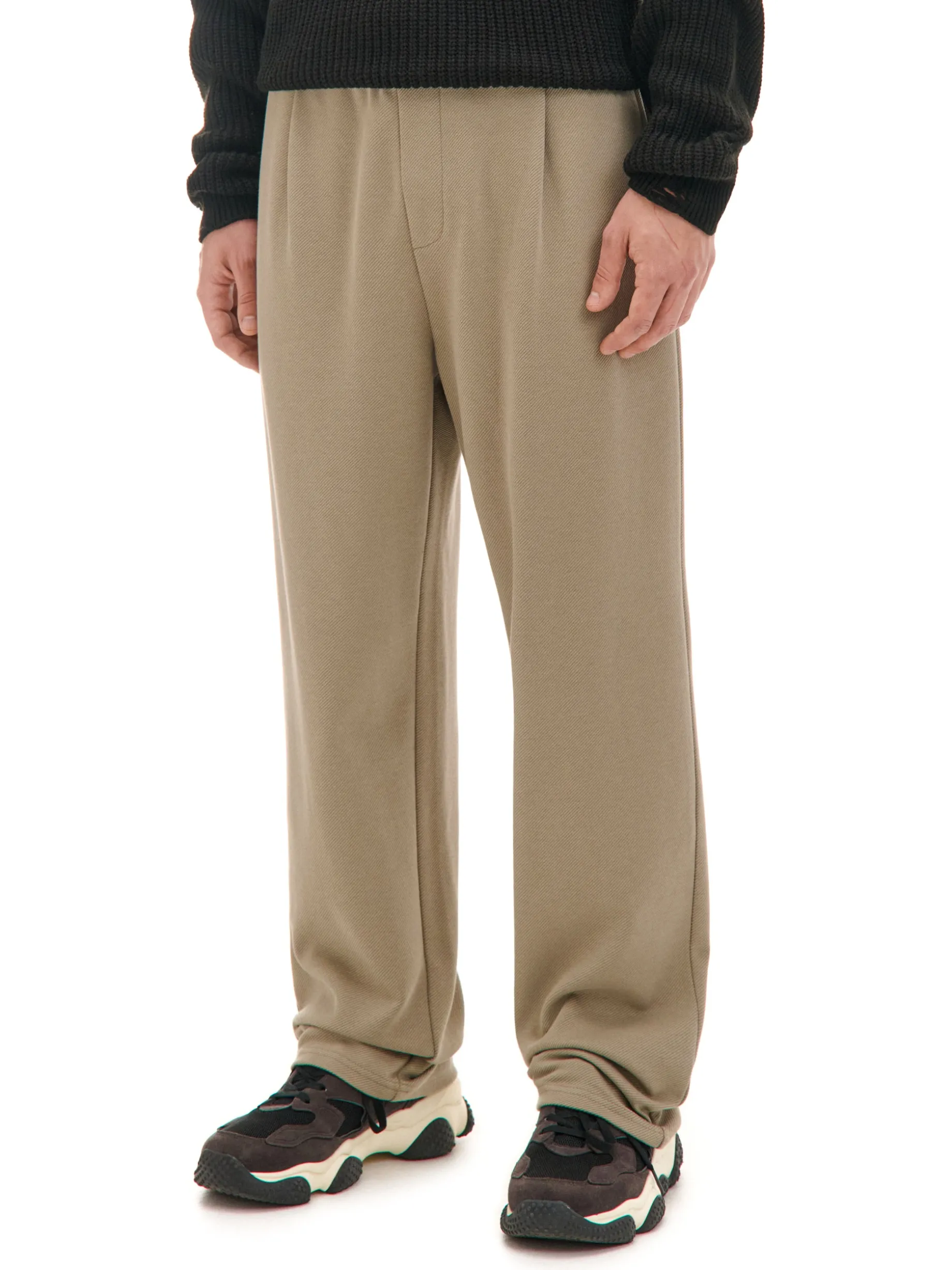Męskie spodnie o kroju comfort, uszyte z dzianiny o wysokiej zawartości bawełny. Podwójny dżersej sprawia, że spodnie są trwałe i bardzo wygodne. Spróbuj! dzianinowy materiał z bawełną wygodny krój comfort elastyczna gumka w pasie dwie kieszenie po bokach listewkowe kieszenie z tyłu modelujące zakładki z przodu efekt sprania na całości