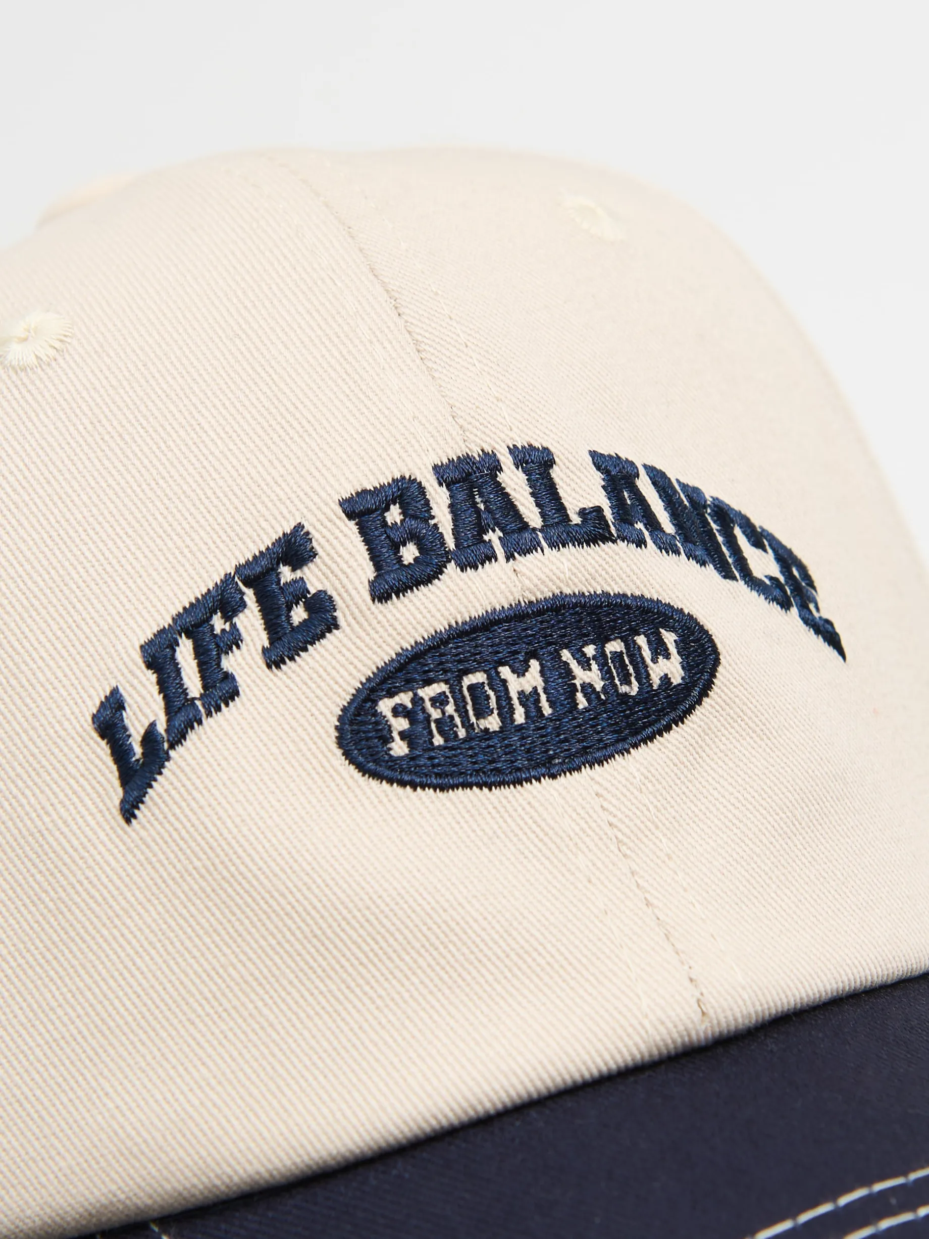 Damska czapka typu bejsbolówka, uszyta z bawełnianej tkaniny. Must-have na lato! profilowany daszek możliwość regulacji obwodu za pomocą paska haft z napisem LIFE BALANCE FROM NOW