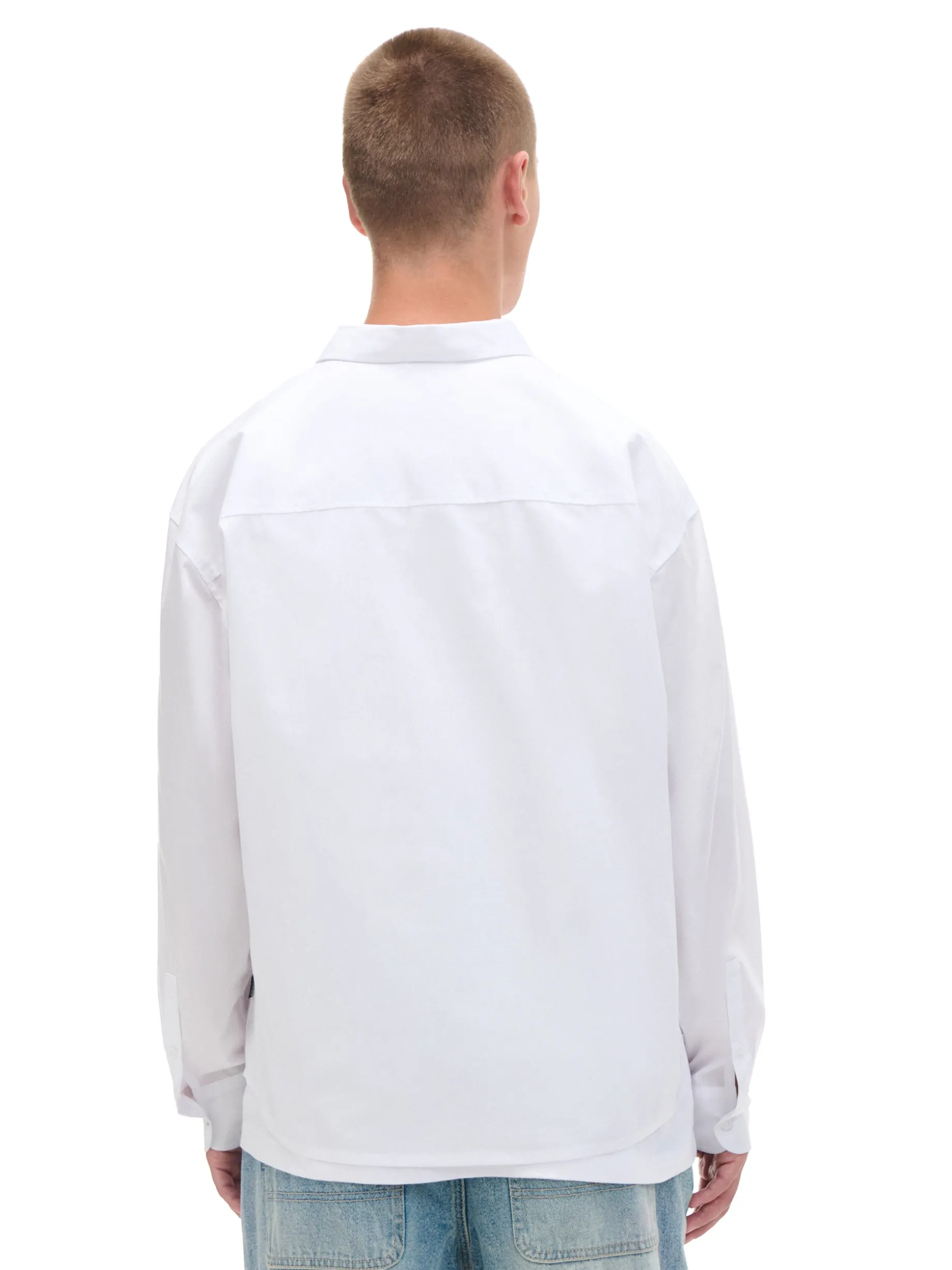 Biała męska koszula o kroju comfort z kołnierzykiem, uszyta z miękko wykończonej popeliny. Delikatny haft na kieszonce sprawia, że koszula pasuje do casualowej, jak i bardziej eleganckiej stylizacji. dzianinowy materiał z bawełną swobodny krój jednorzędowe zapięcie na guziki klasyczny kołnierzyk długie rękawy zakończone mankietem z guzikami kieszeń piersiowa niewielki haft z przodu Wzrost modela: 185 cm