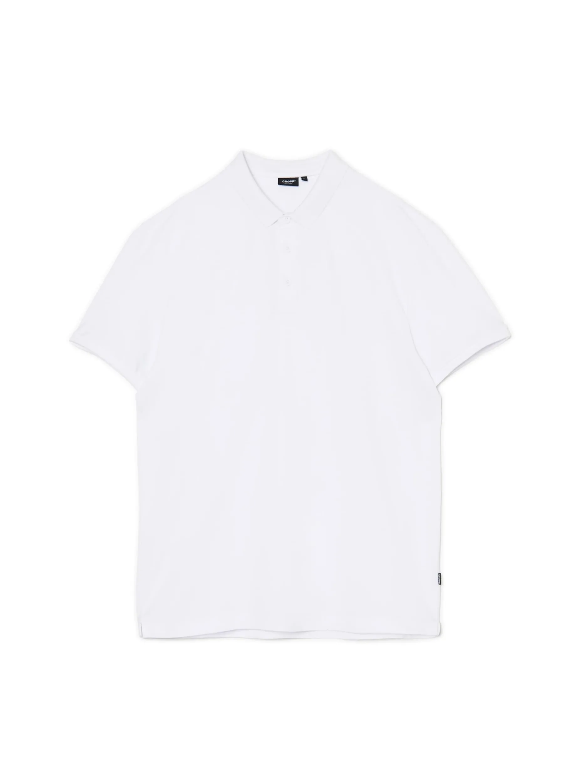 Biała koszulka typu polo idealnie pasuje na mniej lub bardziej formalne spotkania. wygodny i regularny krój dostosuje się do Twojej sylwetki krótki rękaw pozwoli Ci zachować swobodę ruchu 100% bawełny to gwarancja, że koszulka się nie przetrze i nie rozciągnie po praniu