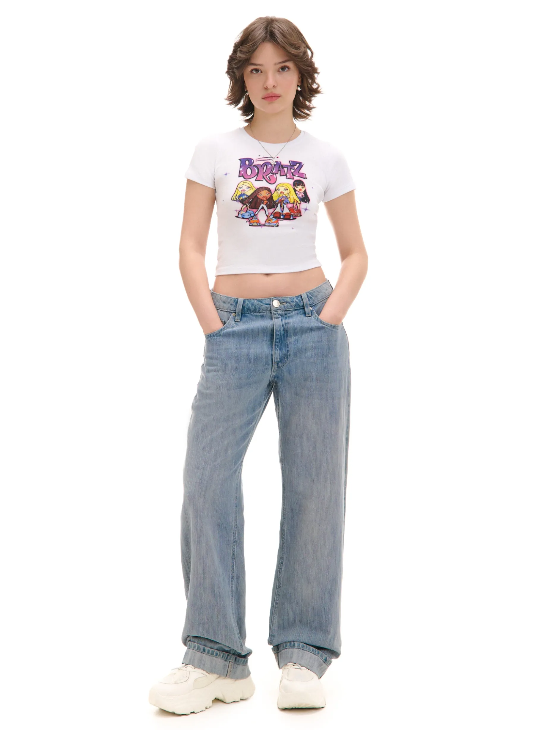 Mamy dla Ciebie damski T-shirt z krótkim rękawem o dopasowanym kroju z nadrukiem inspirowanym serią lalek Bratz. Dziewczyny znają się na modzie! bawełna z dodatkiem elastycznych włókien dopasowany krój podkreślający sylwetkę okrągły dekolt krótkie, ścięte rękawy nadruk z przodu ©2024 MGA ENTERTAINMENT, INC. BRATZ ® IS A TRADEMARK OF MGA IN THE U. S. AND OTHER CONUTRIES. ALL LOGOS, NAMES, CHARACTERS, LIKENESSES, IMAGES, SLOGANS, AND PACKAGING APPEARANCE ARE ALL PROPERTY OF MGA.