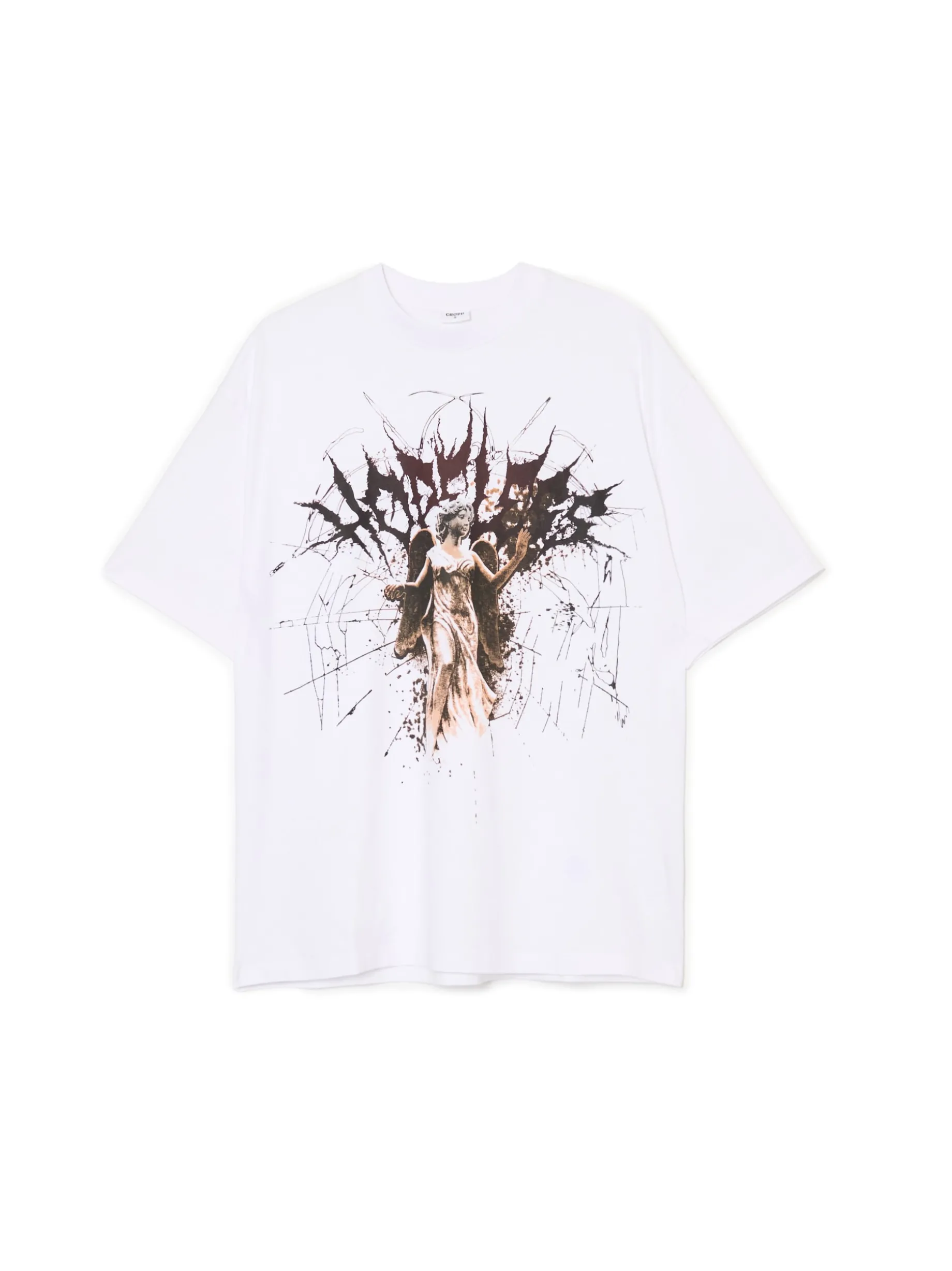 Biały damski T-shirt o kroju oversize z krótkimi, szerokimi rękawami i artystycznym nadrukiem na przodzie. 100% bawełny krój oversize okrągły dekolt z lamówką krótkie, szerokie rękawy nadruk z motywem Halloween Ten produkt należy do kolekcji UNISEX – zalecamy wybranie mniejszego rozmiaru niż zazwyczaj, jeśli chcesz uniknąć efektu oversize.