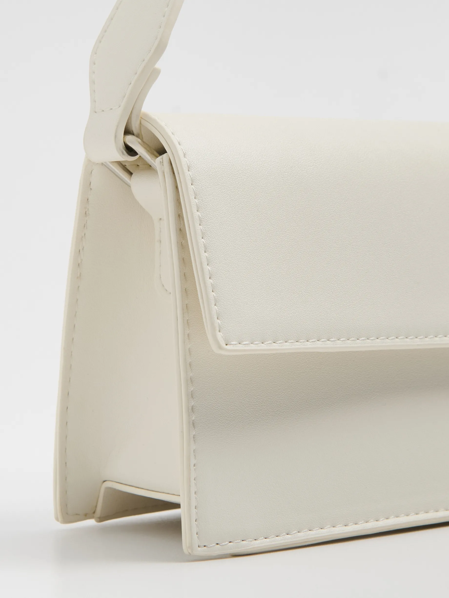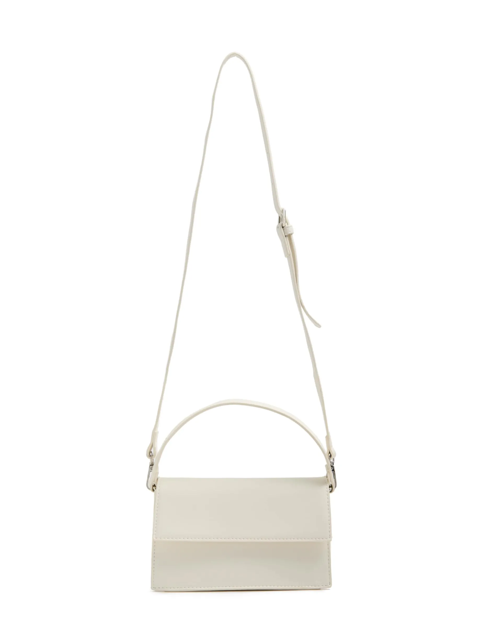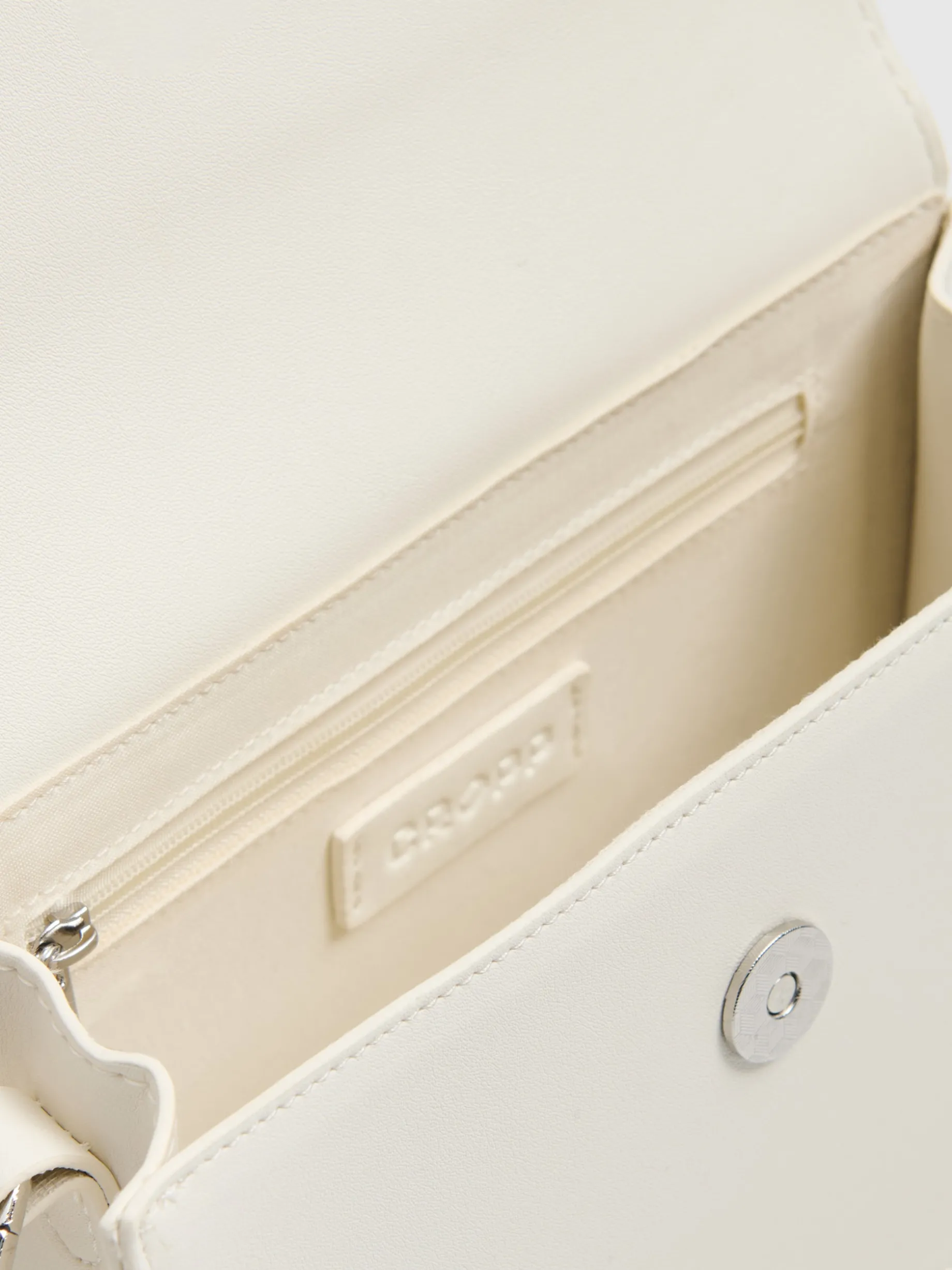 Damska mała torebka uszyta z mieszanki tkanin w kolorze białym. Wyposażona w praktyczne zapięcie na magnes i dodatkową kieszeń z zamkiem. Możesz ją nosić w ręku lub na ramieniu, dzięki dodatkowemu paskowi z regulacją. Uniwersalna i szykowna! mała torebka typu camera bag wykonana z łączonych materiałów zapięcie na klapę z magnesem pasek w zestawie dodatkowy pasek z regulacją długości wewnątrz kieszeń zapinana na zamek