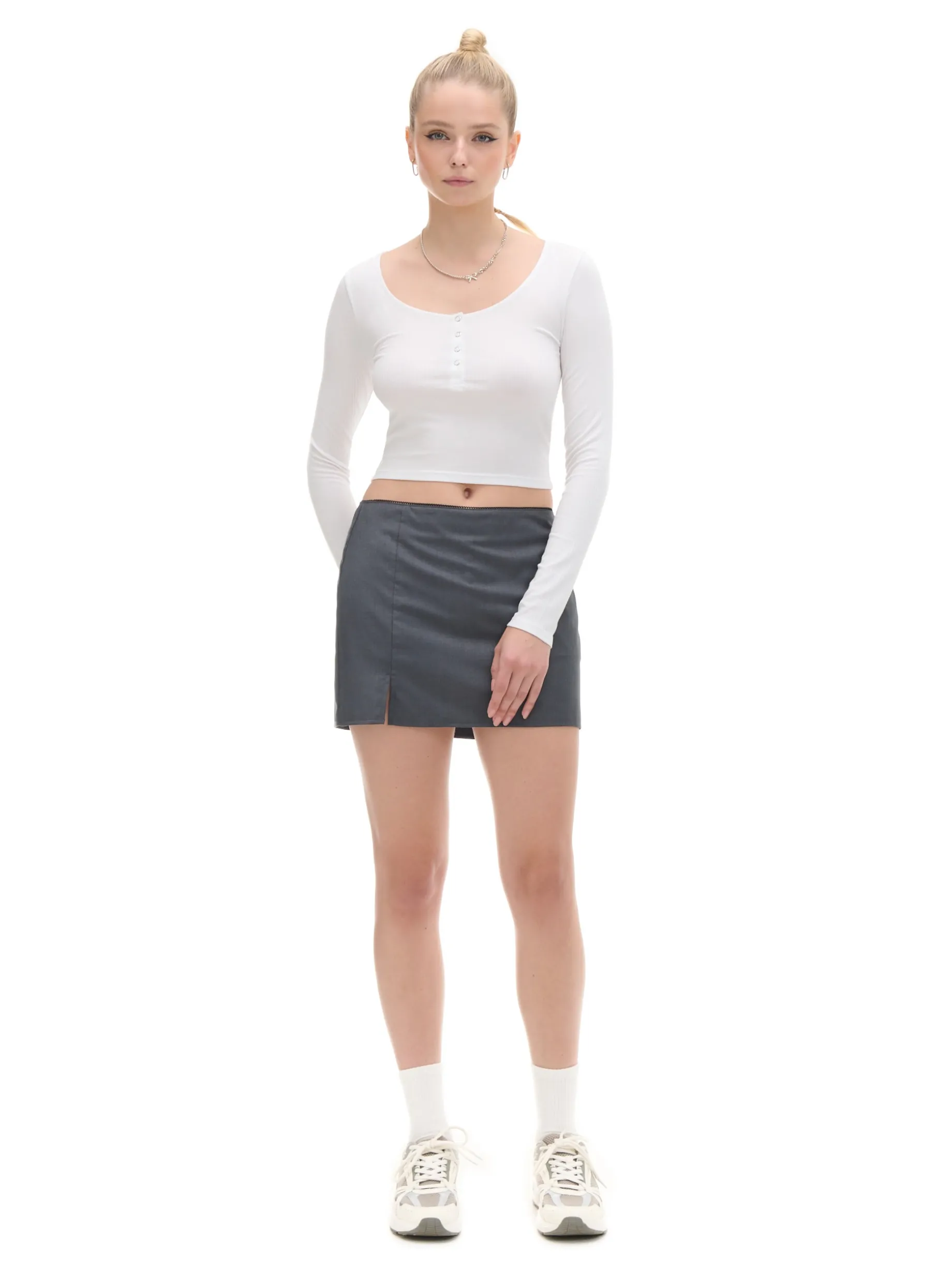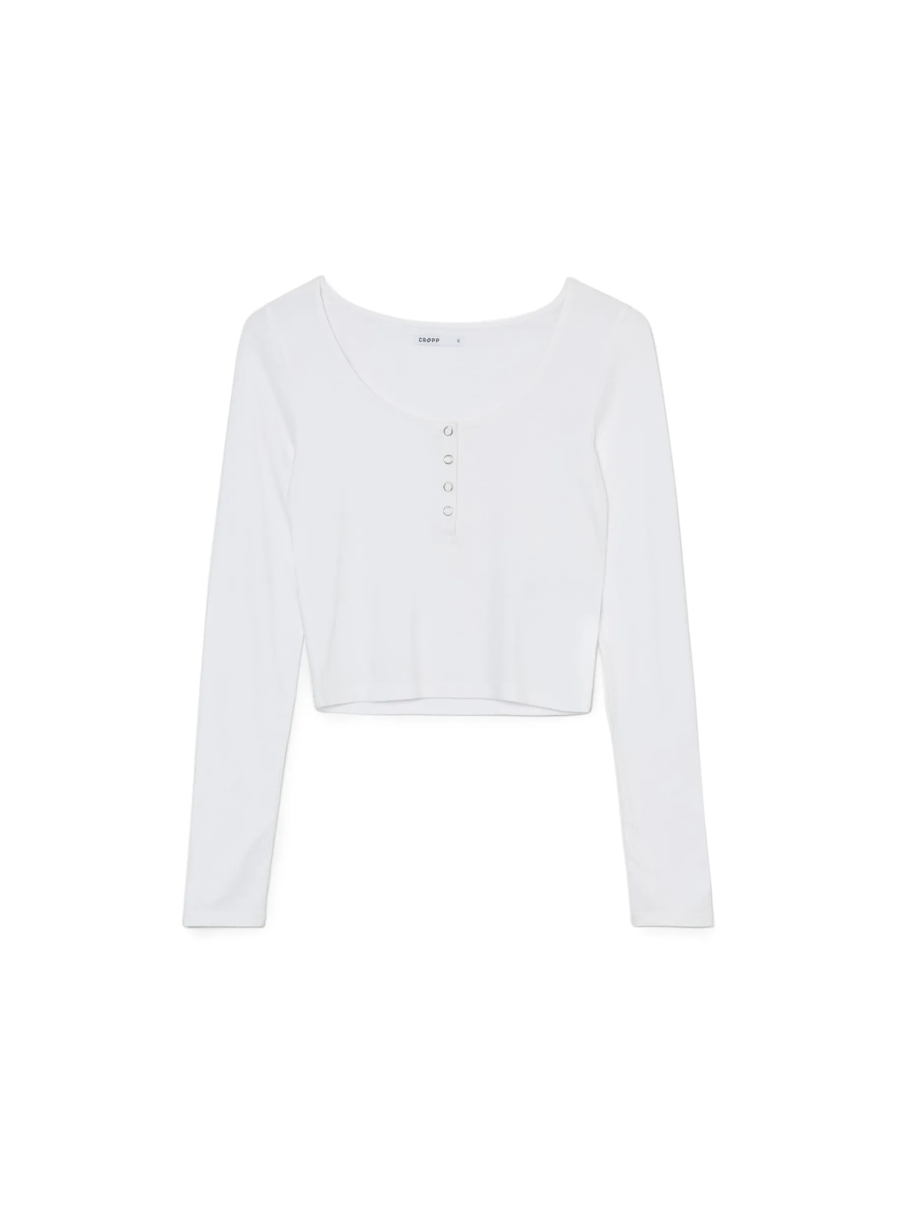 Damska biała bluzka, uszyta z mieszanki wiskozy i elastanu. Dobierz do niej oryginalne dodatki! dopasowany krój podkreślający sylwetkę długie, dopasowane rękawy góra zapinana na okrągłe zatrzaski okrągły dekolt z lamówką ciekawa, prążkowana faktura