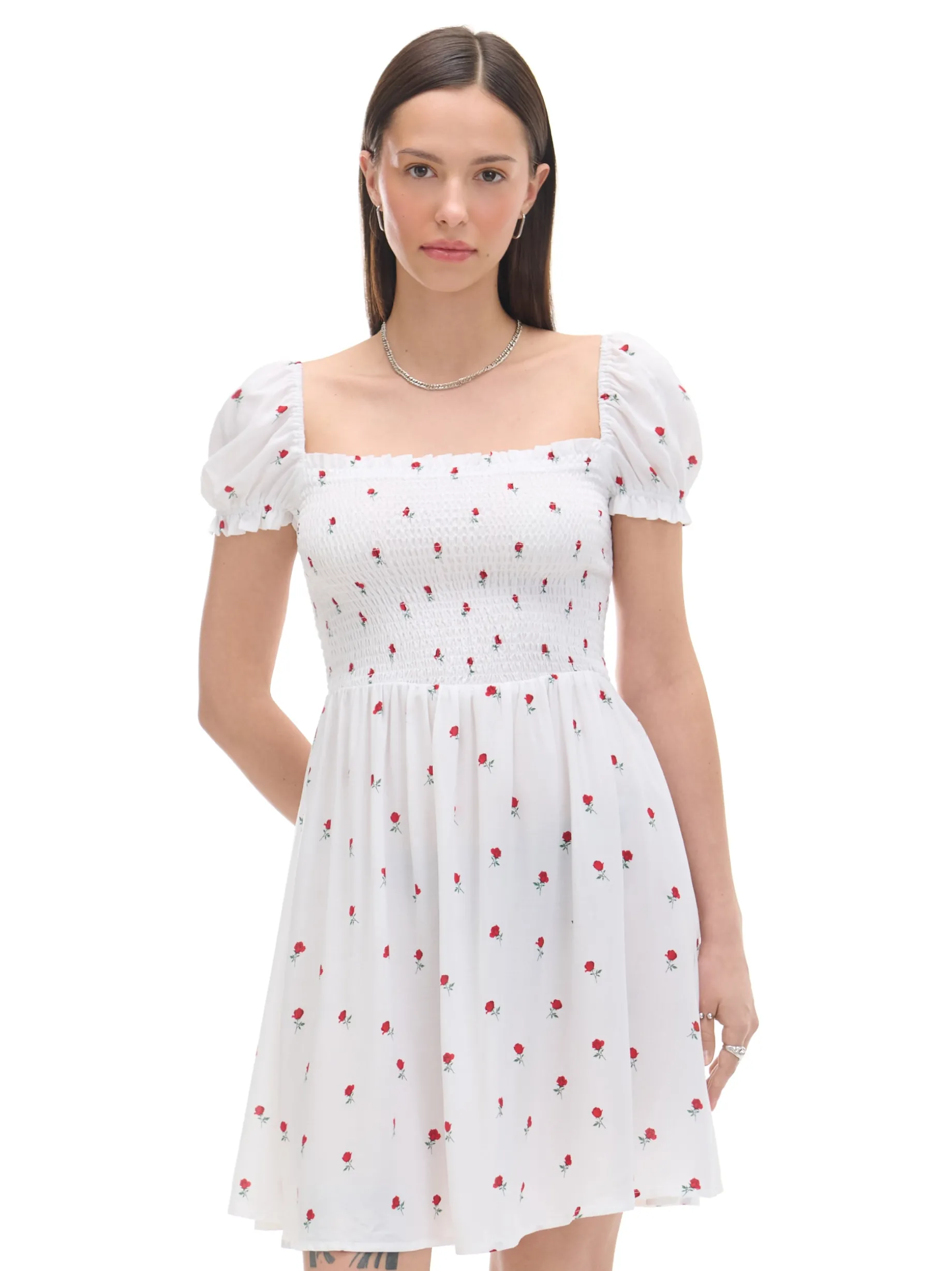Biała sukienka mini z bufiastymi rękawami