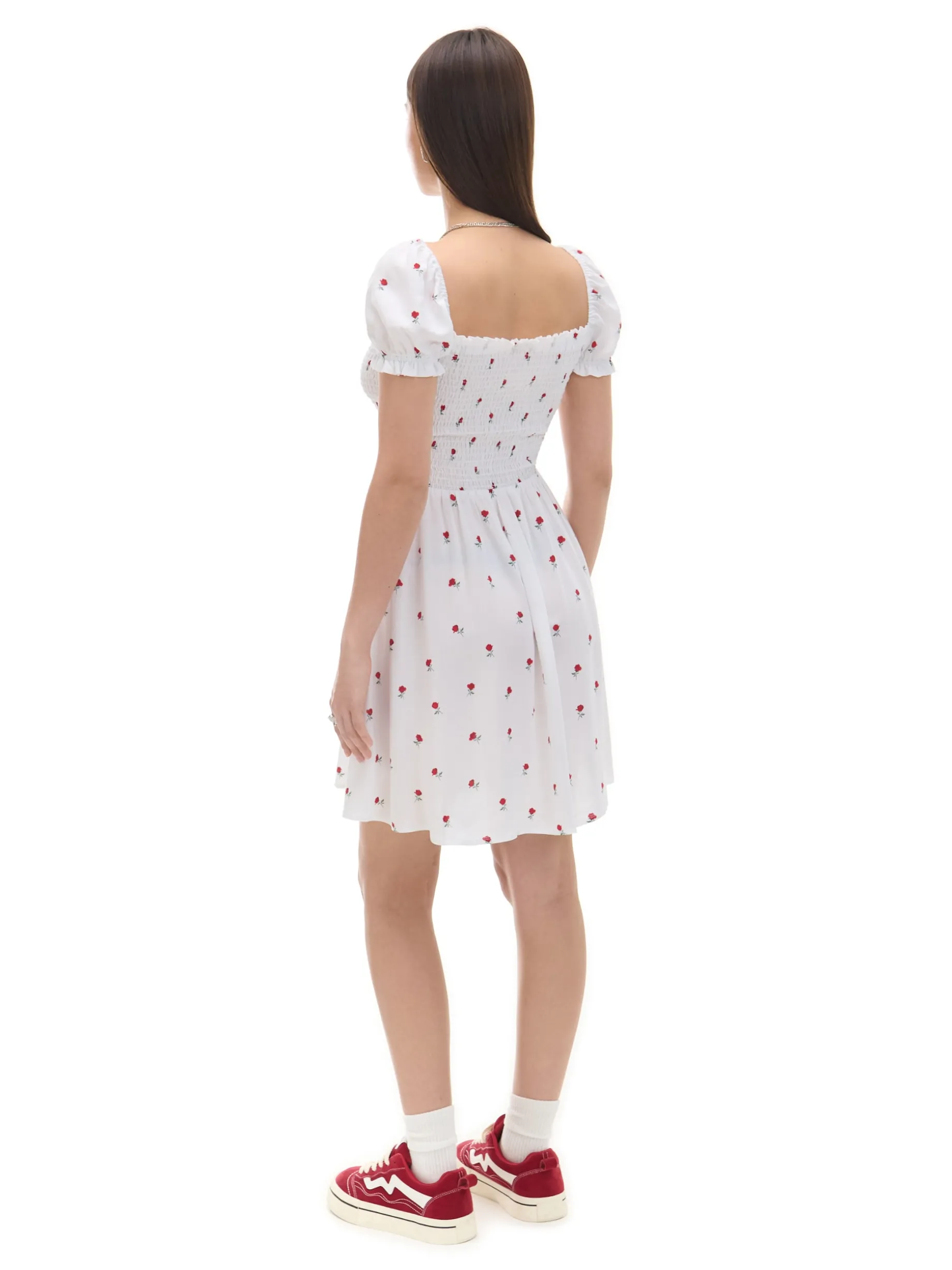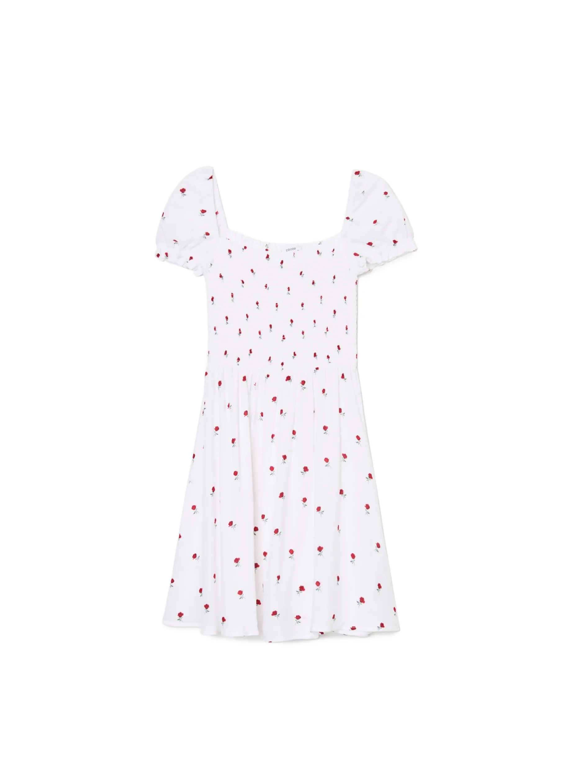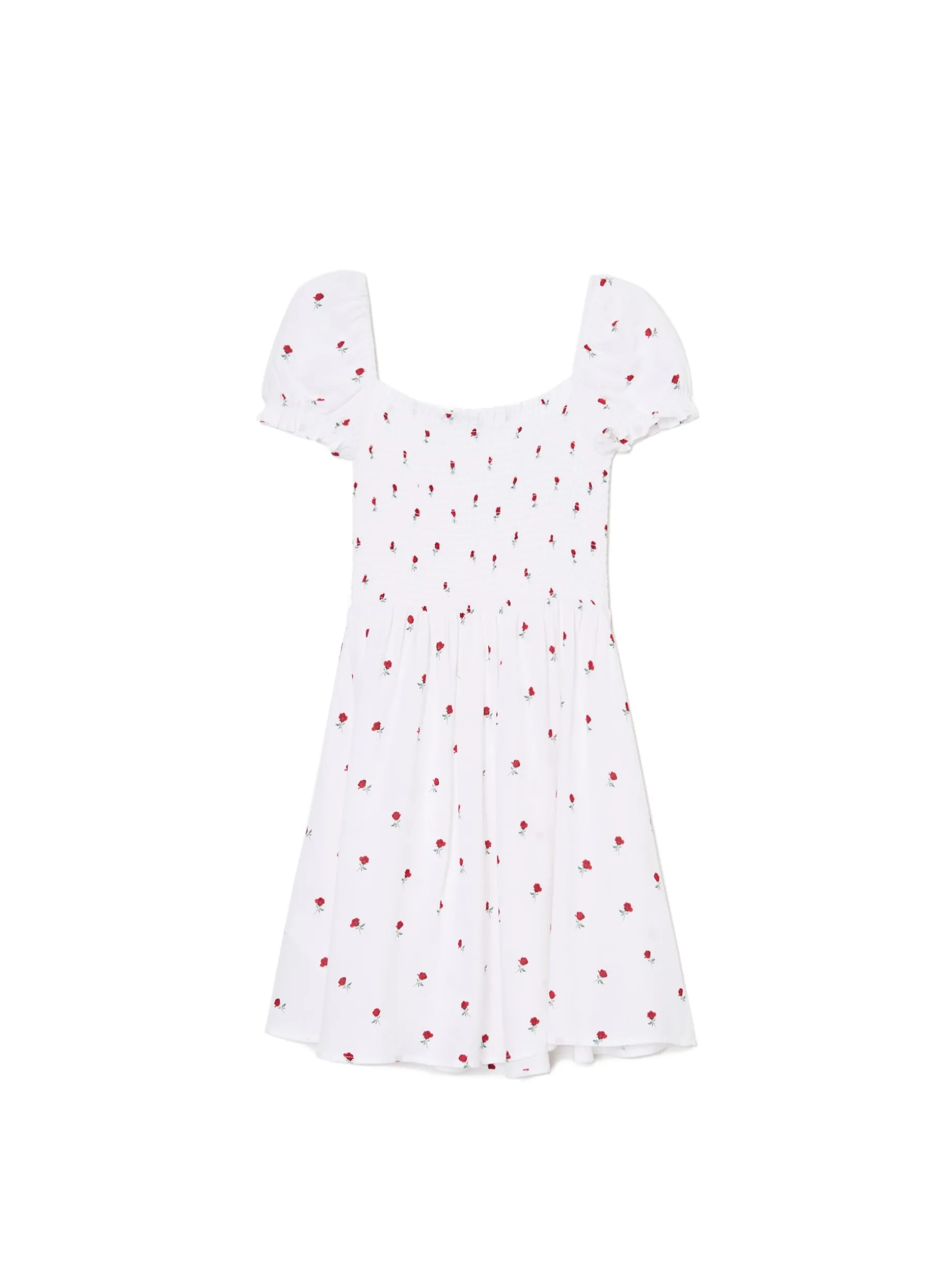 Damska sukienka w stylu coquette uszyta z lekkiego materiału o długości mini i kwiatowym wzorze. Must have letnich wypadów! 100% wiskozy długość mini w stylu coquette krótkie, bufiaste rękawy dopasowana, elastyczna góra odcięta w talii autorski, kwiatowy print na całości