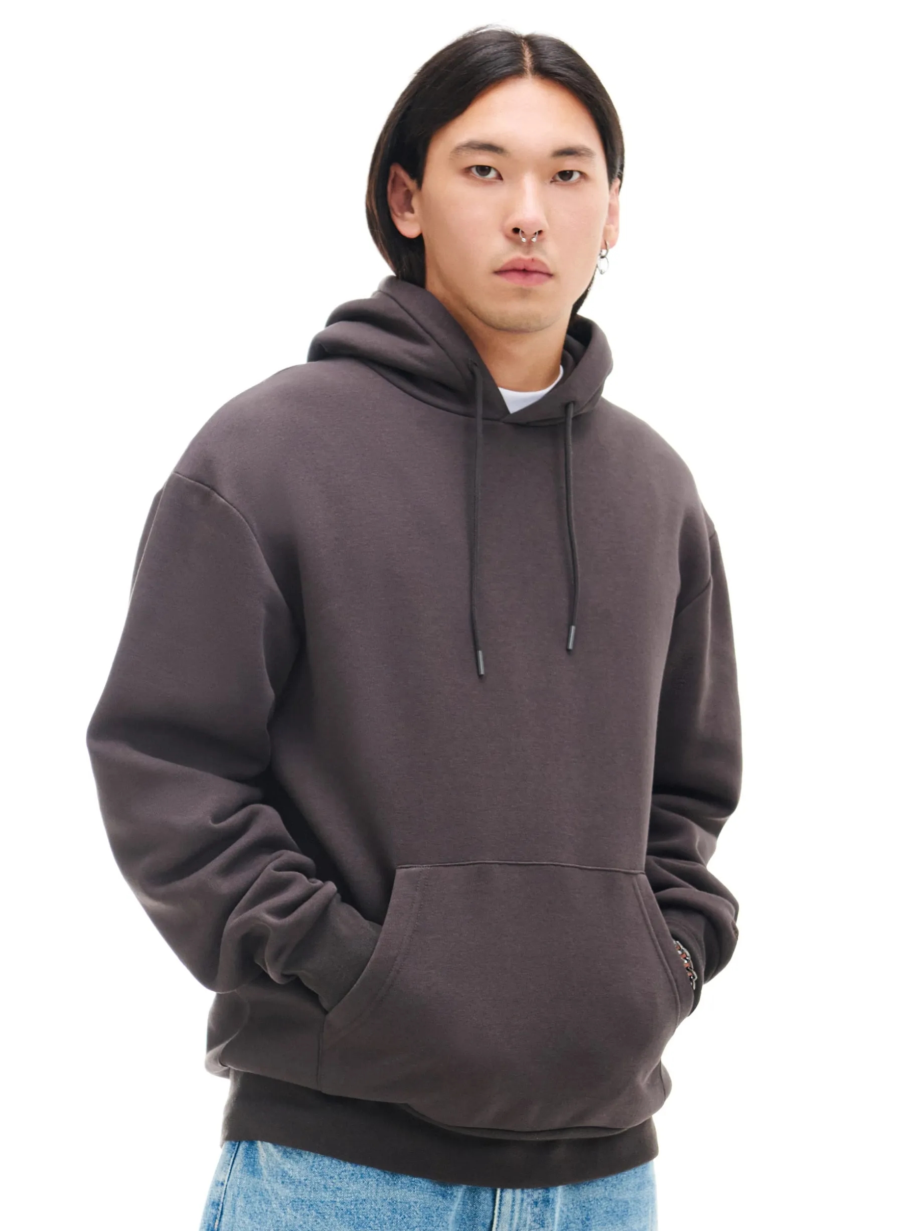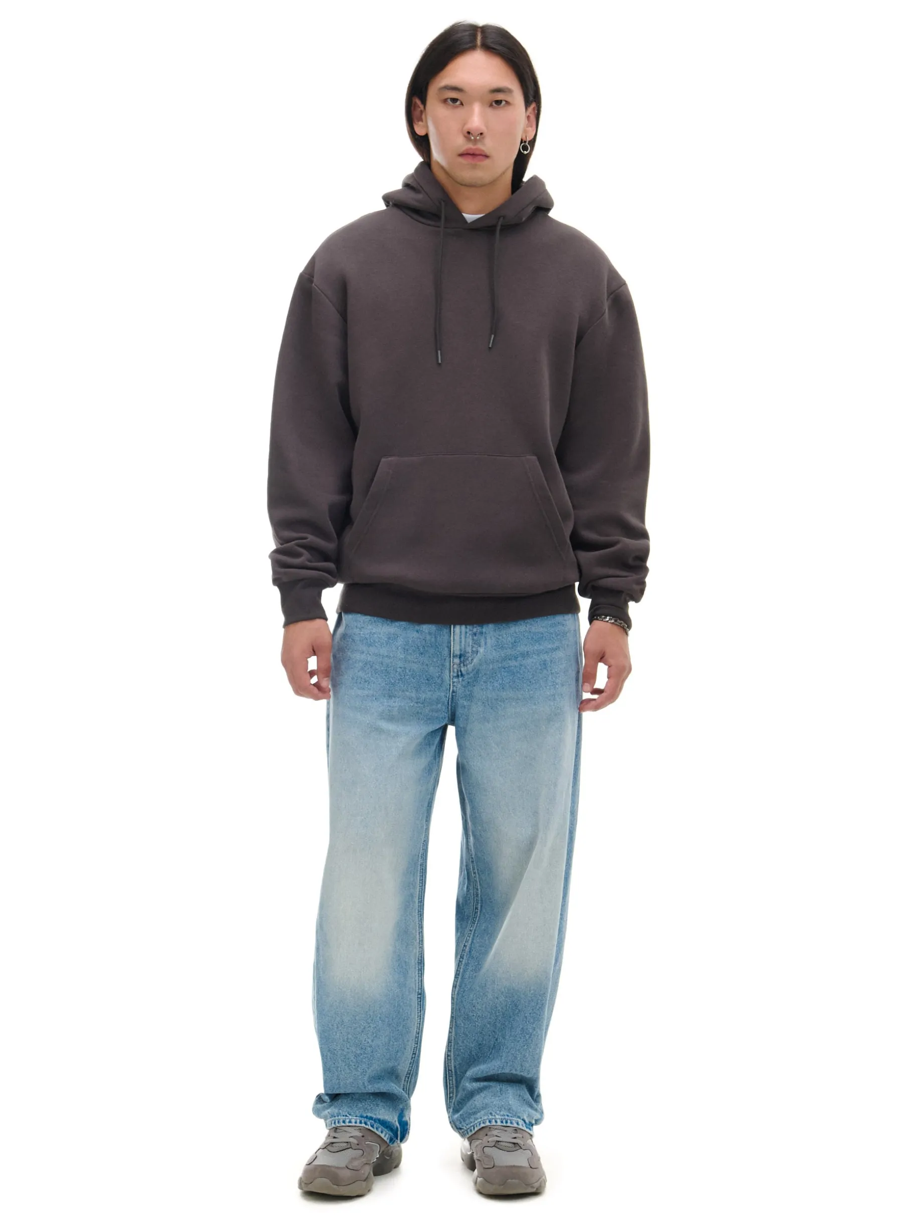 Gładka męska bluza z kapturem o regularnym kroju, uszyta z mieszanki dzianin o wysokiej zawartości bawełny. Casual, który warto mieć pod ręką! uszyta z gładkiej, bawełnianej dzianiny regularny krój miękki kaptur z troczkami swobodne rękawy z obniżoną linią ramion dół i rękawy wykończone ściągaczem z przodu duża kieszeń typu kangurka