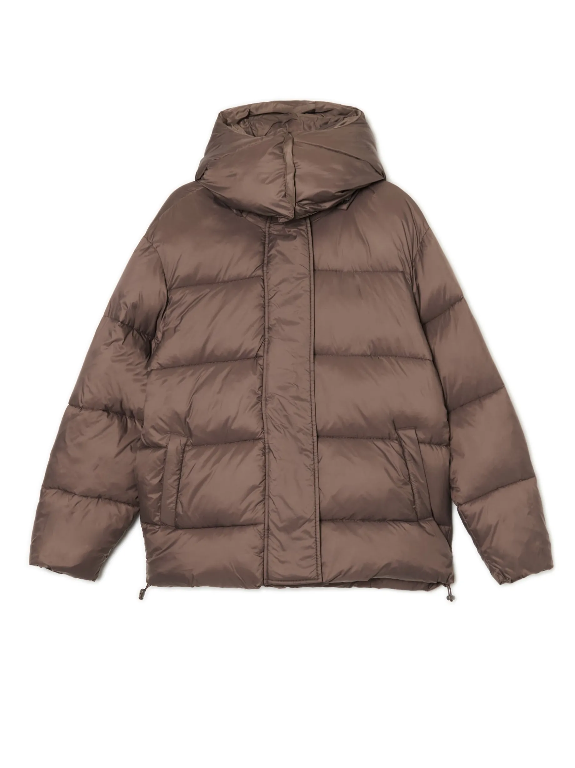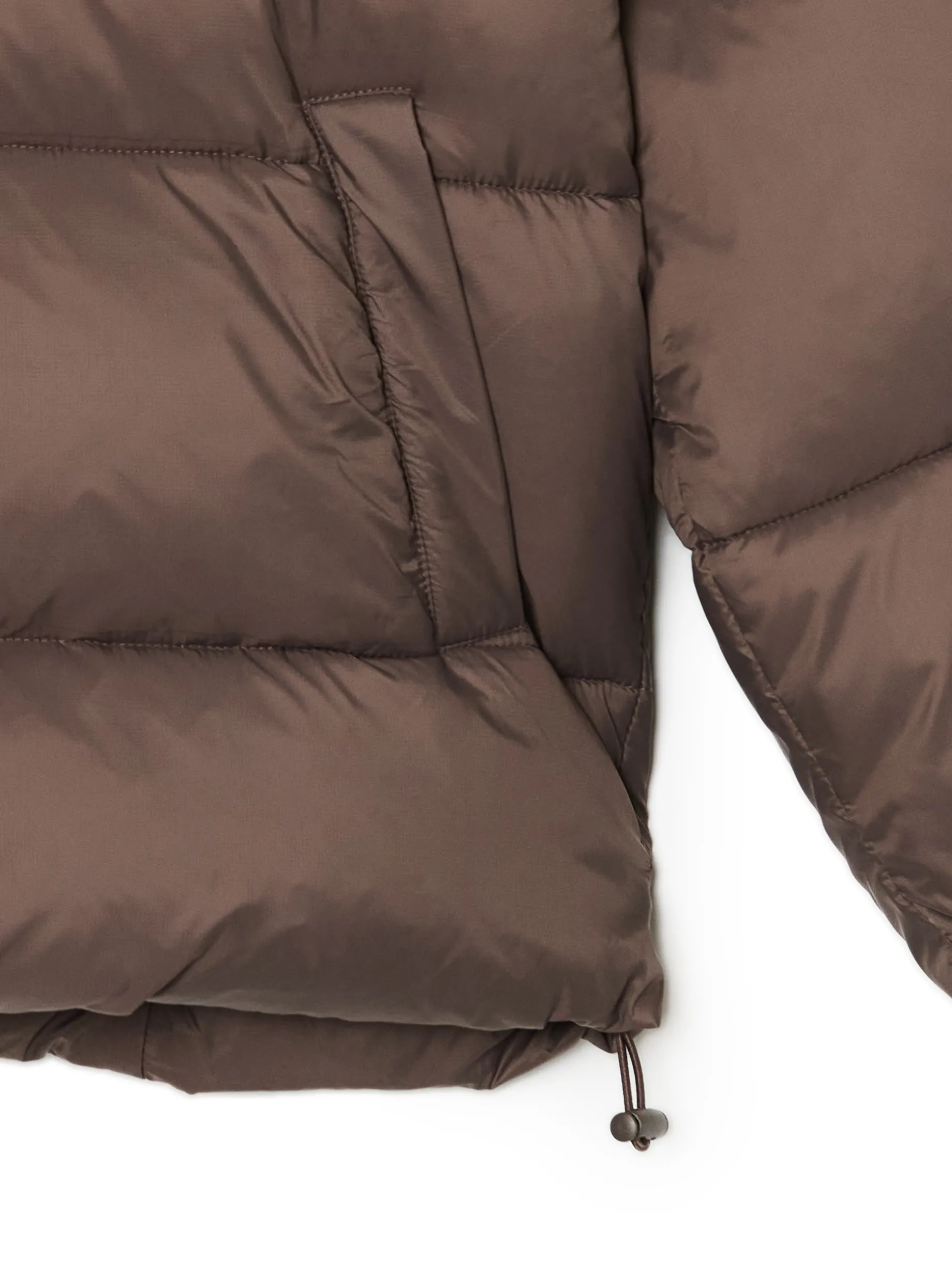 Brązowa pikowana kurtka z kapturem