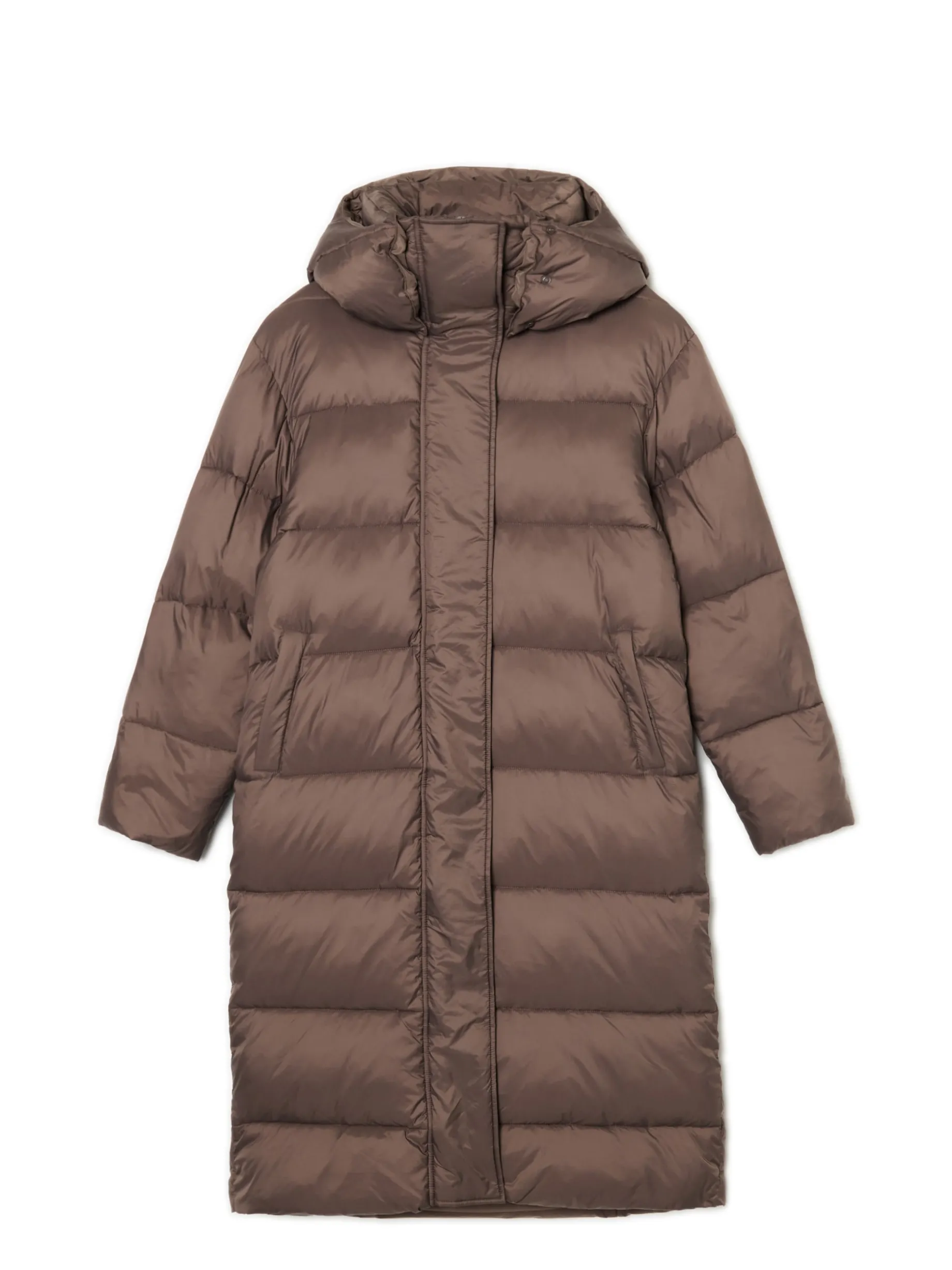 Brązowy pikowany płaszcz z kapturem
