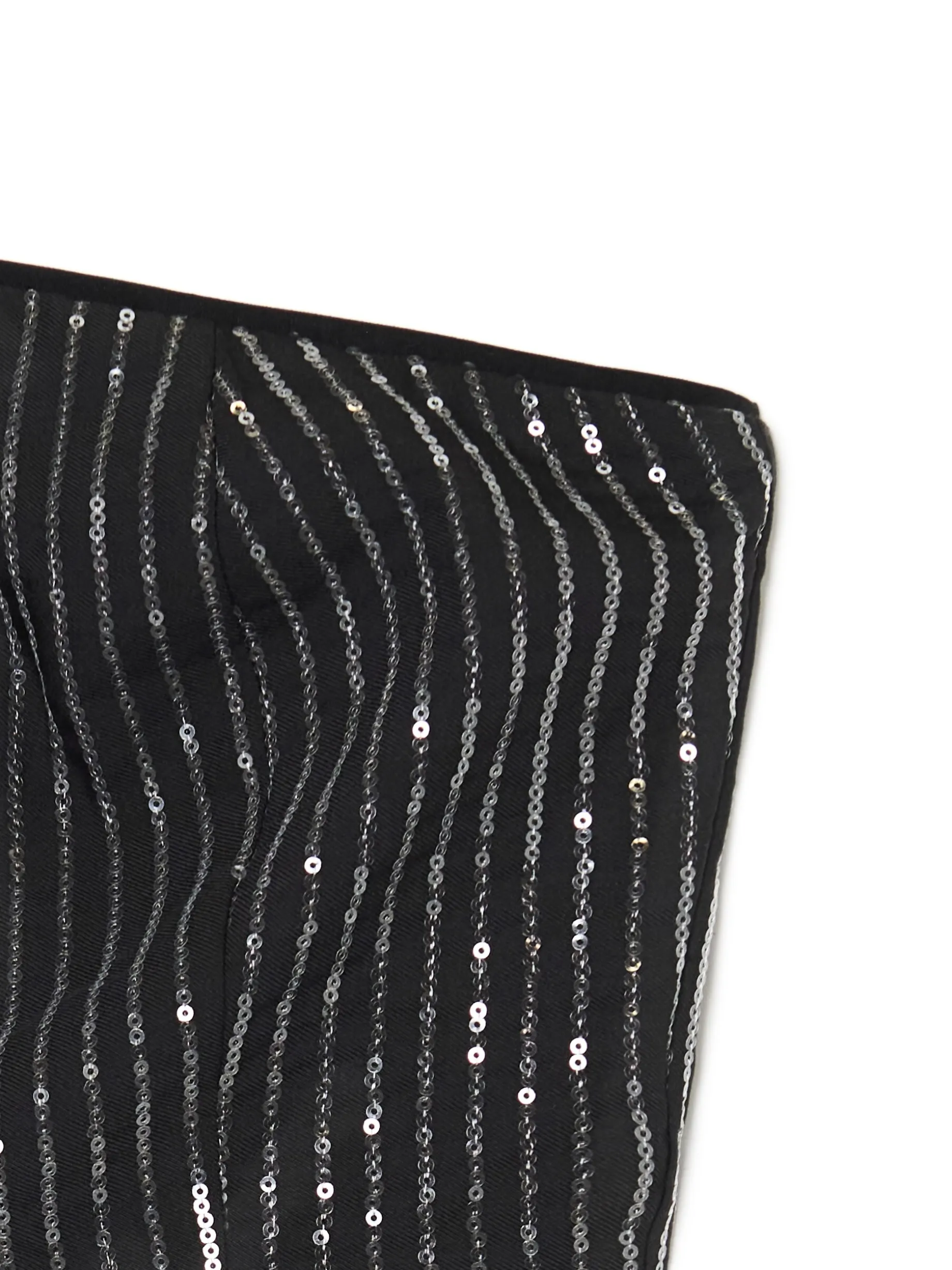 Błyszczący top uszyty z mieszanki tkanin z dodatkiem wiskozy. Na całej powierzchni aplikacja w formie cekinowych pasów. Dzięki niemu nie przejdziesz niezauważona w tłumie! uszyte z tkaniny z dodatkiem wiskozy dopasowany krój podkreślający sylwetkę zapięcie na kryty zamek z boku cekinowa aplikacja all over