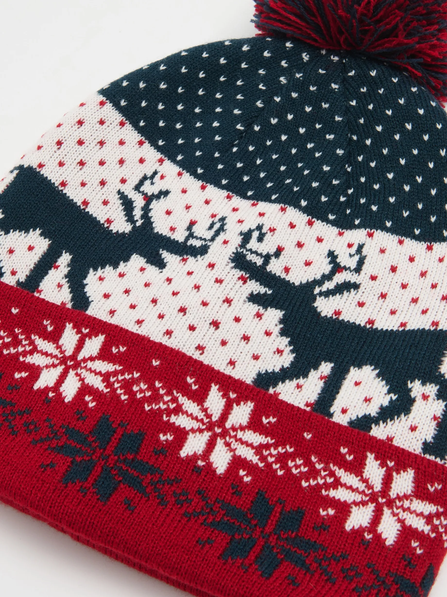 Łap męską czapkę typu beanie, uszytą z przyjemnej w dotyku dzianiny. Na całości zimowy wzór ze skandynawskim motywem. A jak czapka na zimę, to tylko z pomponem! przyjemny w dotyku materiał prosty krój ozdobny pompon nadruk all over