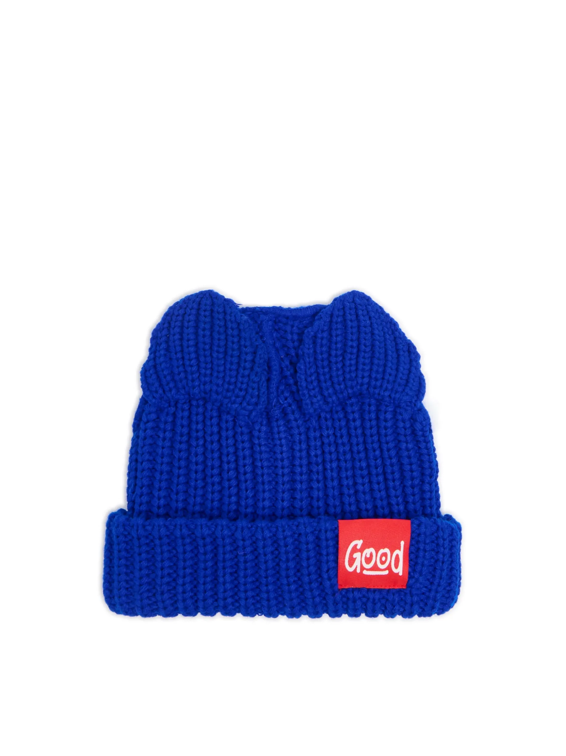 Męska czapka typu beanie na sezon zimowy, uszyta z miękkiej i przyjemnej w dotyku dzianiny w odcieniu niebieskiego. Ozdobą tego modelu jest naszywka z nadrukiem tekstowym i oryginalne kocie uszy. Mamy kilka tipów jak ją nosić: dla mężczyzn z krótkimi włosami – z mankietem lub bez i na całej powierzchni głowy dla mężczyzn z długimi włosami – bez mankietu i wysoko na czole dla mężczyzn z kręconymi włosami – z mankietem lub bez i wysoko na czubku głowy