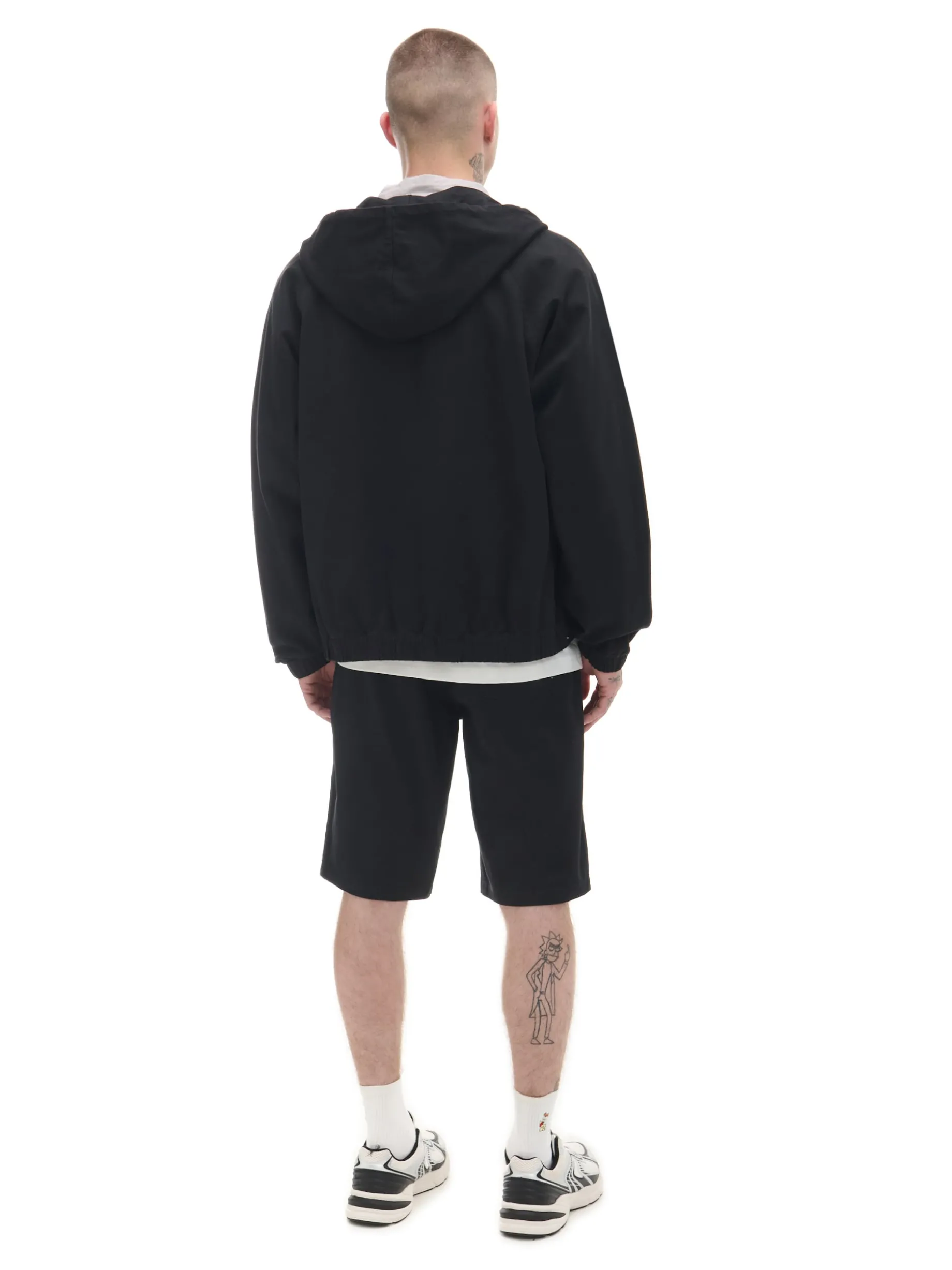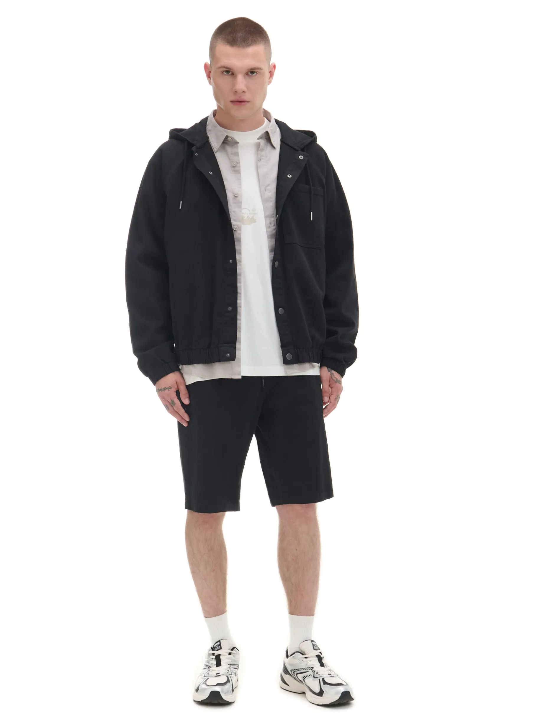 Męska kurtka z kapturem typu katanka, uszyta z bawełny w czarnym kolorze. Wygodne zapięcie na napy, szeroki kaptur z trokami i funkcyjne kieszenie to must have spontanicznych wypadów. 100% bawełny regularny stan zapięcie na zatrzaski na całej długości obszerny kaptur z troczkami dół i mankiety wykończone ściągaczami duża kieszeń z przodu dwie kieszenie po bokach Model prezentuje produkt w rozmiarze M/L. Wzrost modela: 185 cm