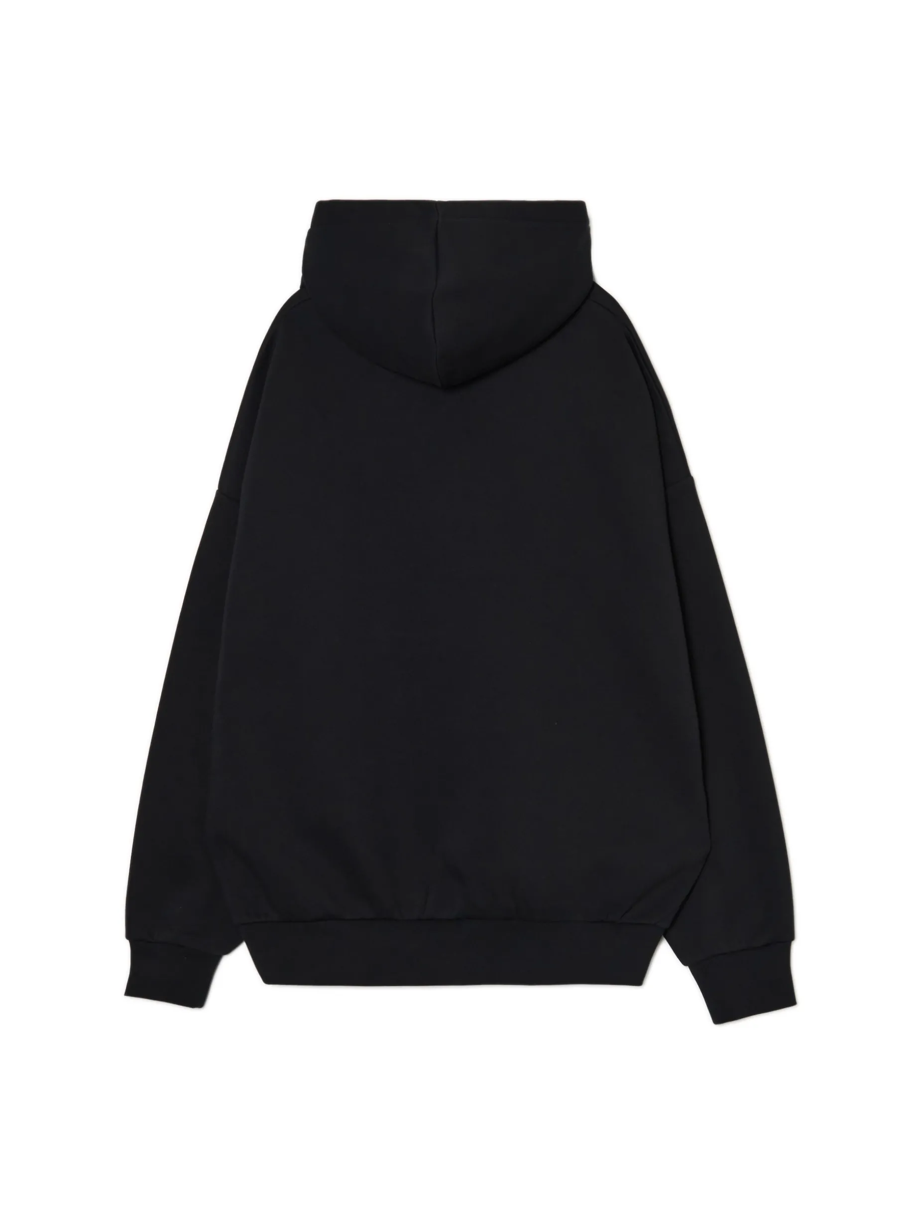 Bluza męska typu hoodie o kroju oversize, uszyta z mieszanki dzianin z dodatkiem miękkiej bawełny fleecy. Z przodu nadruk tekstowy uzyskany przez połączenie efektów puff i spray print. dzianinowy materiał z bawełną luźny krój oversize obszerny kaptur długie, swobodne rękawy obniżona linia ramion duża kieszeń typu kangurka z przodu gładkie wykończenie brzegów Wzrost modela: 185 cm Ten produkt należy do kolekcji UNISEX – zalecamy wybranie mniejszego rozmiaru niż zazwyczaj, jeśli chcesz uniknąć efektu oversize.