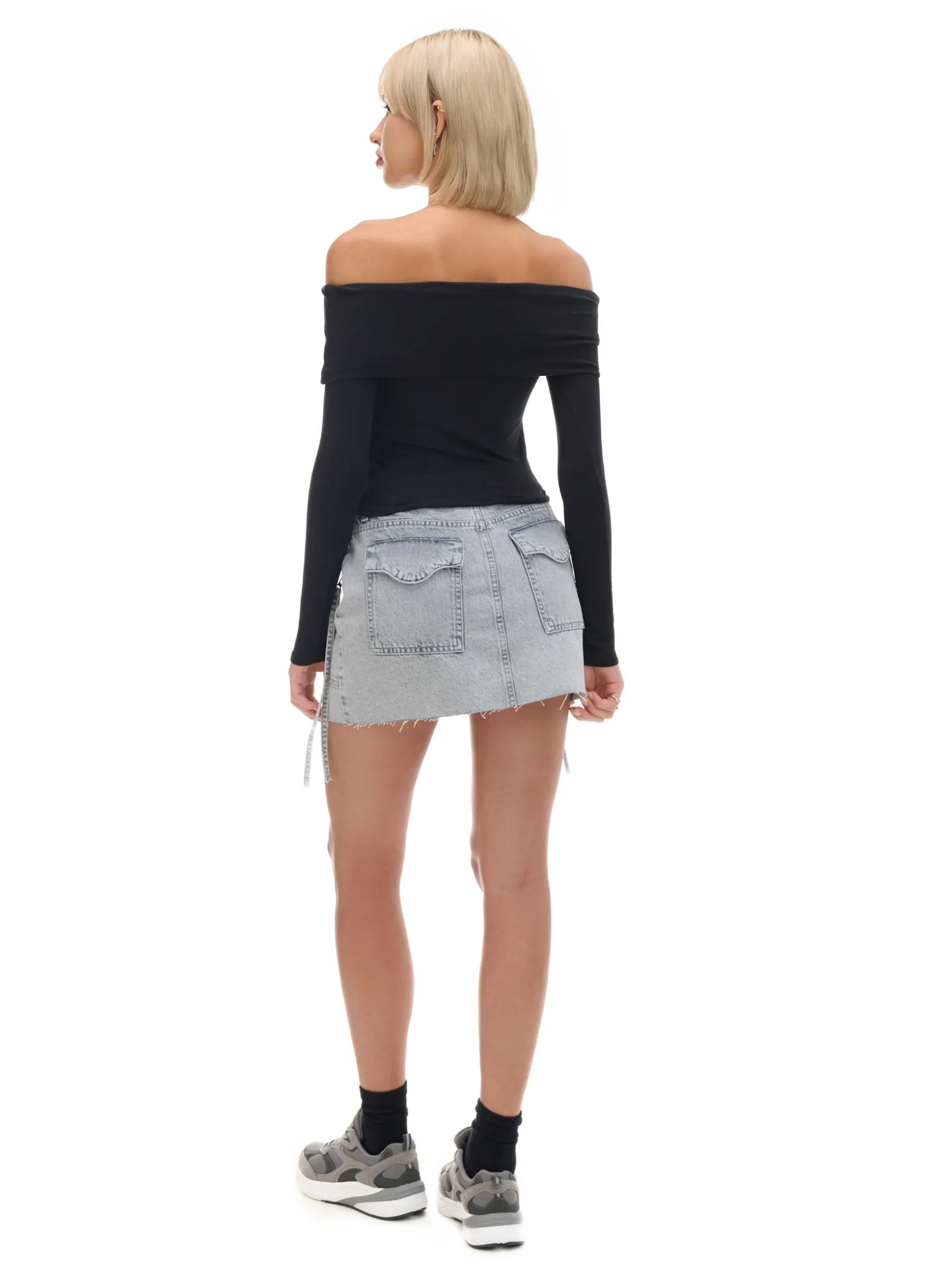 Czarna damska bluzka, uszyta z dzianiny o bardzo wysokiej zawartości bawełny. Domieszka elastanu gwarantuje idealnie dopasowanie do Twojej figury! dopasowany krój, podkreślający sylwetkę długie rękawy zakładka tworząca hiszpański dekolt, odsłaniający ramiona Wzrost modelki: 177 cm