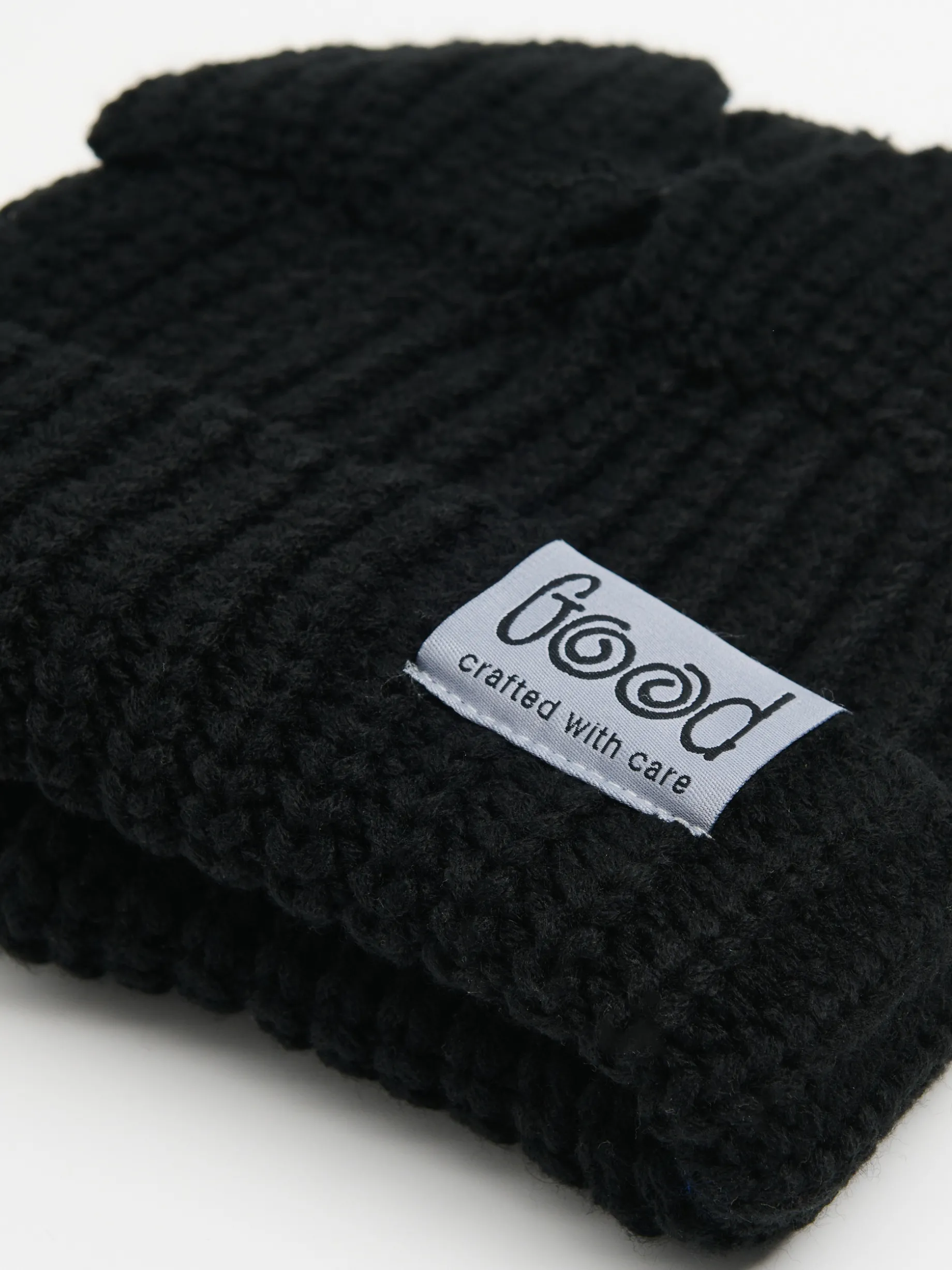 Męska czapka typu beanie na sezon zimowy, uszyta z miękkiej i przyjemnej w dotyku dzianiny w kolorze czarnym. Ozdobą tego modelu jest naszywka z nadrukiem tekstowym i oryginalne kocie uszy. Mamy kilka tipów jak ją nosić: dla mężczyzn z krótkimi włosami – z mankietem lub bez i na całej powierzchni głowy dla mężczyzn z długimi włosami – bez mankietu i wysoko na czole dla mężczyzn z kręconymi włosami – z mankietem lub bez i wysoko na czubku głowy