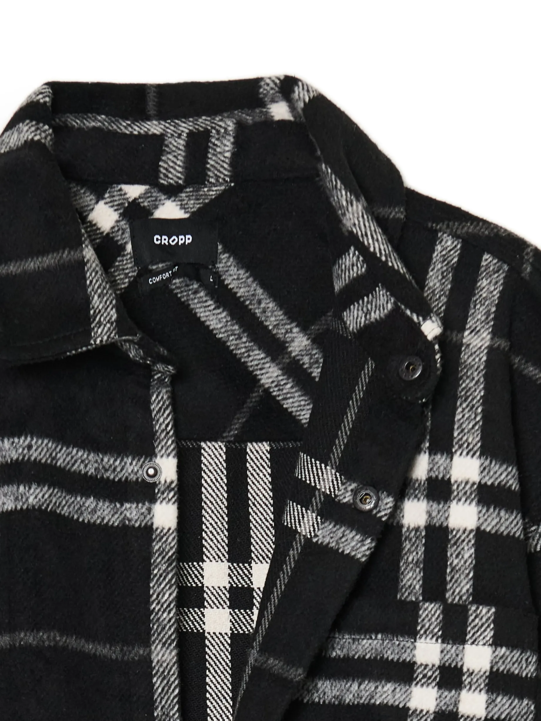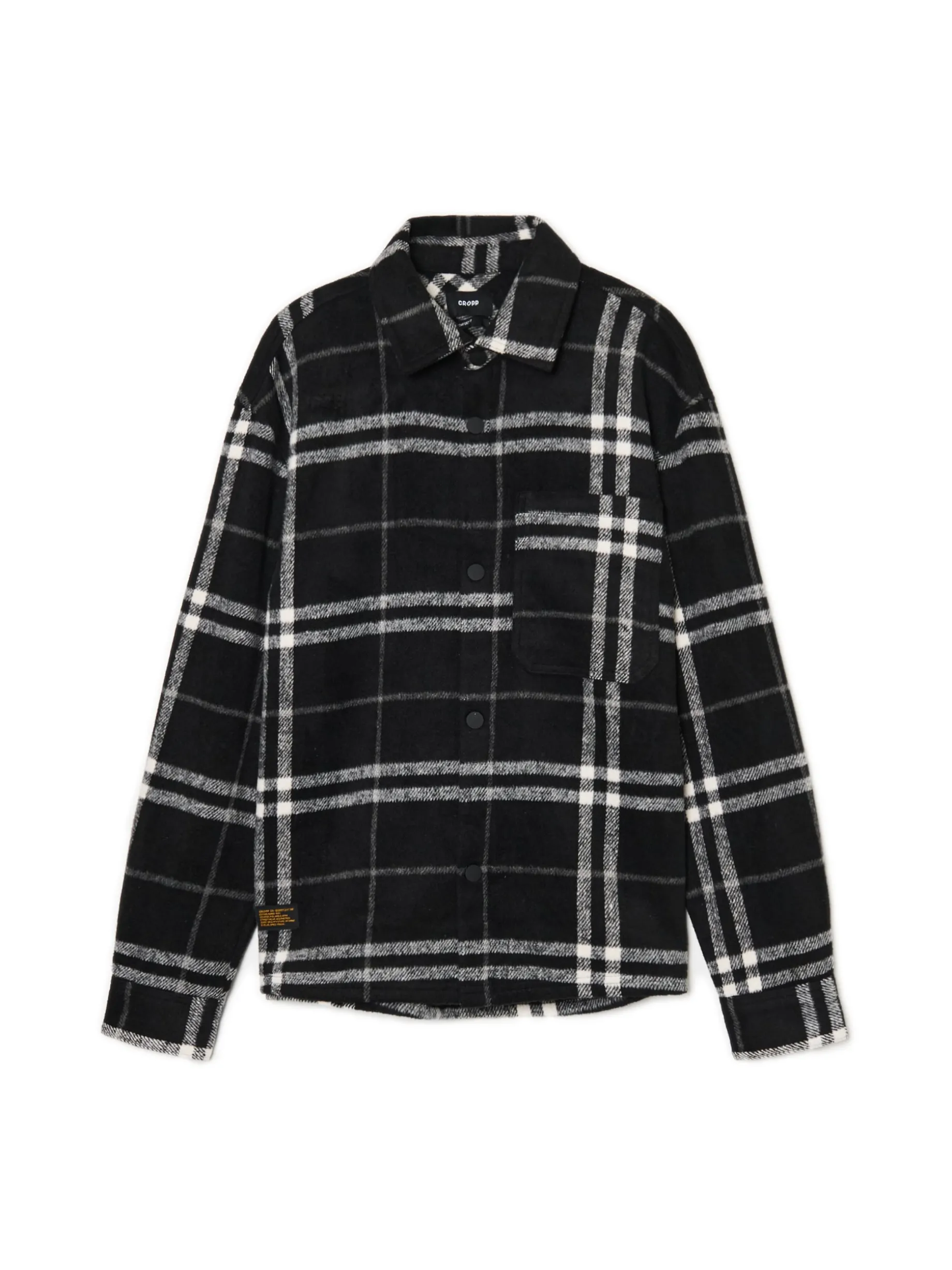 Solidna męska koszula uszyta z dzianiny zawierającej bawełnę, wiskozę oraz wełnę. Wyposażona w kieszeń na piersi i 2 kieszenie w szwach bocznych. Idealny item na casualowe lub bardziej okazjonalne wyjścia. uszyta z tkaniny w kratę miękkie i przyjemne w dotyku wykończenie krój oversize zapięcie na zatrzaski na całej długości kołnierz z otwartymi klapami długie rękawy z zatrzaskami przy mankietach kieszeń piersiowa praktyczne kieszenie wewnętrzne poręczny uchwyt na plecach mała naszywka z boku
