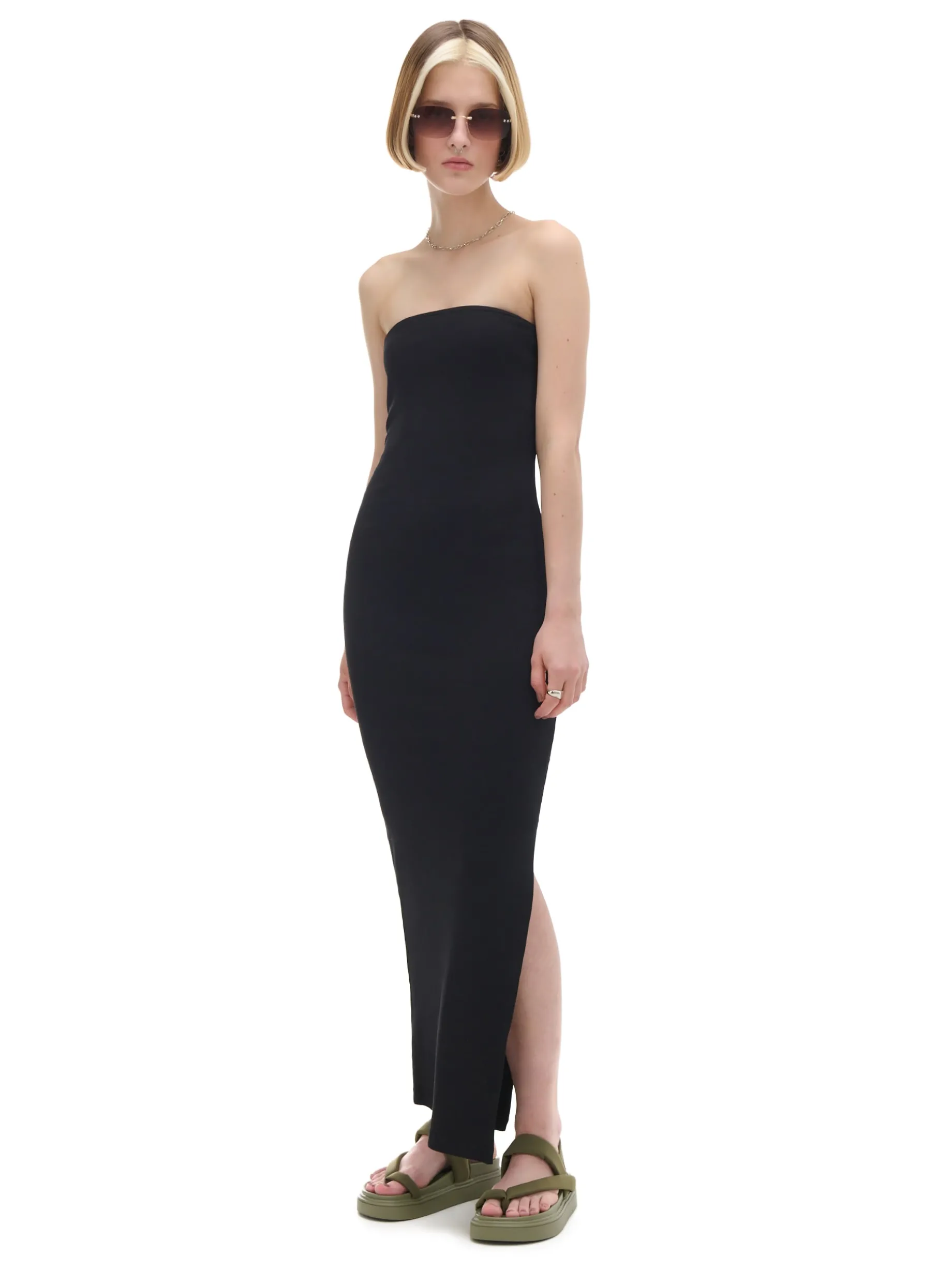 Czarna gładka sukienka midi
