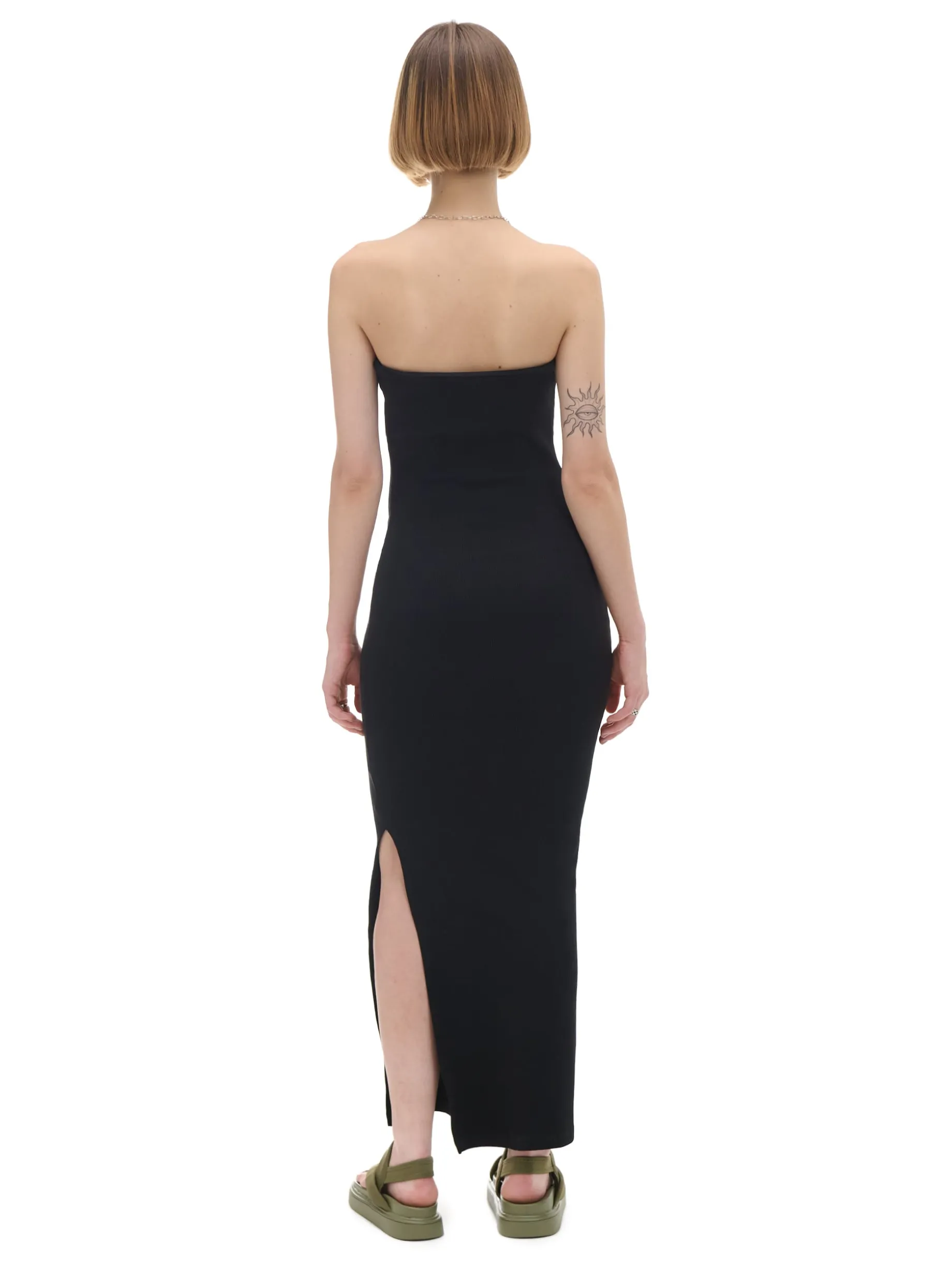 Dopasowana sukienka midi uszyta z bawełny z domieszką elastycznych włókien. Dopasuj ten model do jeansowej kurtki albo skóry!