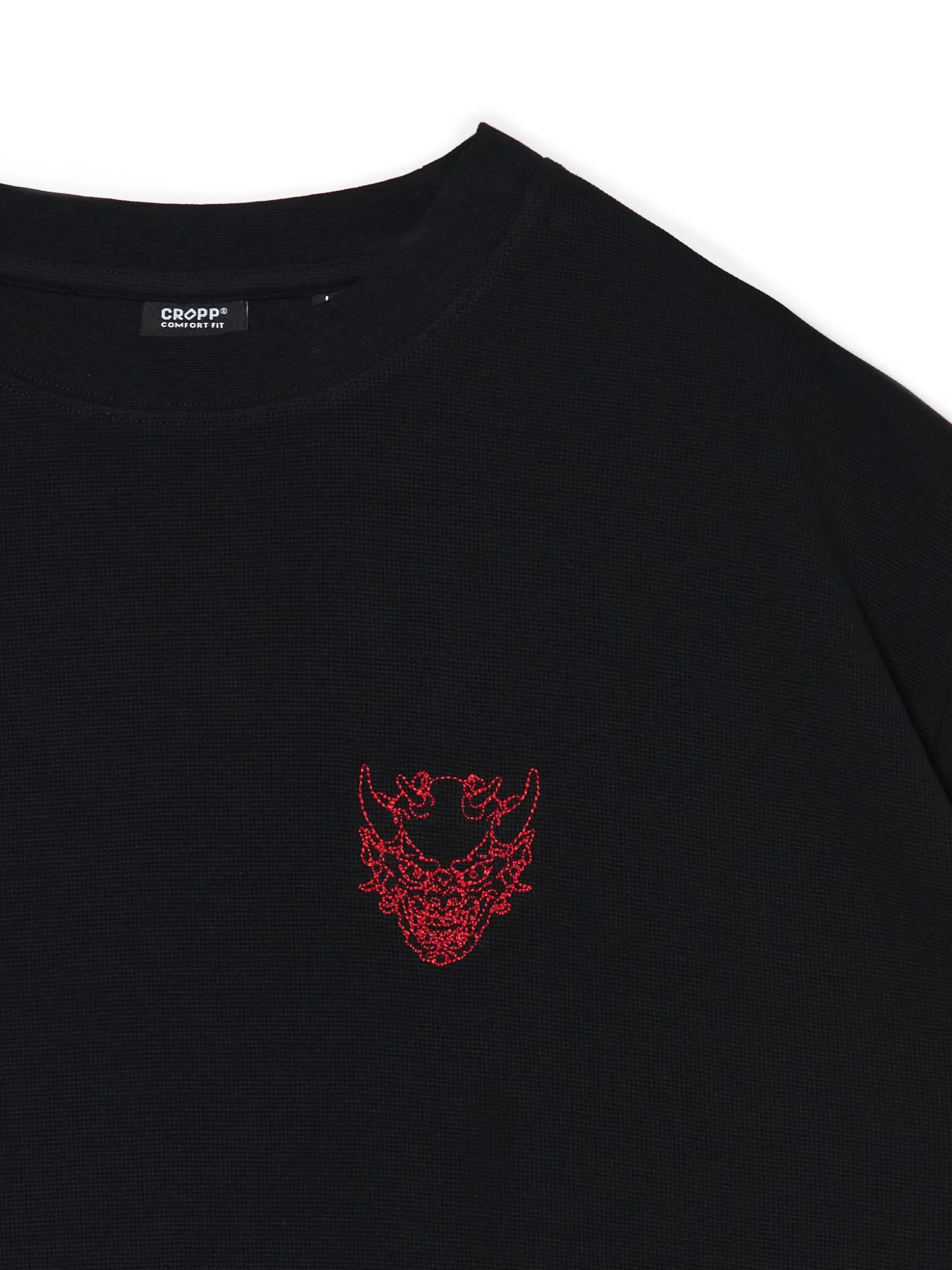 Męska koszulka z krótkim rękawem, uszyta z bawełny. Na przodzie drobna naszywka w oryginalnym kształcie. 100% bawełny swobodny, luźny krój półokrągły dekolt z lamówką krótkie rękawy z obniżoną linią ramion Wzrost modela: 185 cm