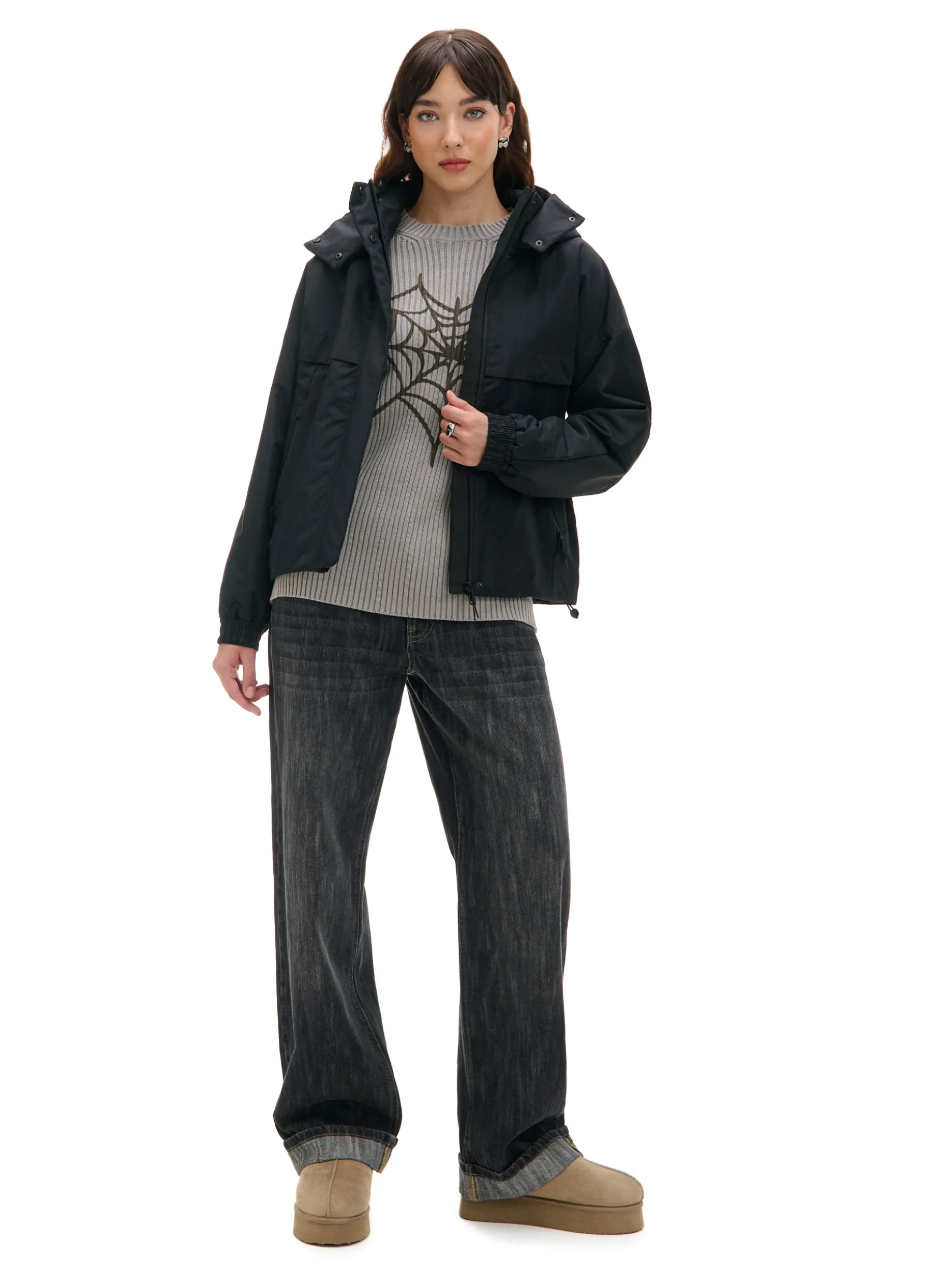 Czarna kurtka anorak z kapturem