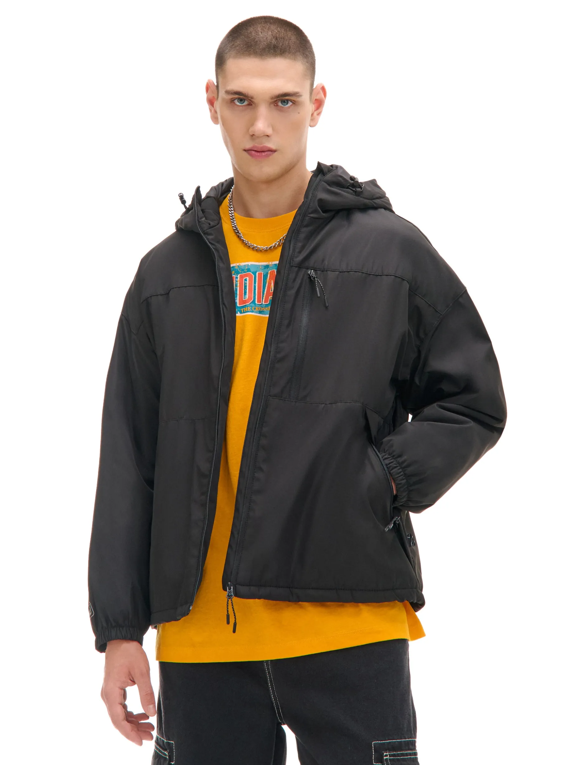 Kurtka wykonana z dodatkiem materiału przyjaznego dla środowiska. Posiada termoplastyczną membranę chroniącą przed wiatrem i deszczem. Dodatkową jej zaletą jest przepuszczalność wilgotności. Z tym itemem będziesz gotowy na nowy sezon. uszyta z gładkiej tkaniny wewnątrz lekkie ocieplenie i podszewka zapięcie na zamek na całej długości stójka z kapturem kaptur z regulacją szerokości za pomocą gumek ze stoperem kieszenie boczne z zamkami dodatkowa kieszeń zewnętrzna z zapięciem na zamek wewnątrz kieszeń zapinana na rzep dół i mankiety wykończone wąskim ściągaczem PROTECTION LEVEL 2rn Kurtka uszyta z tkaniny z lekkim wypełnieniem, której właściwości zapewnią Ci ochronę przed wiatrem i deszczem. Doskonale sprawdzi się w sezonie przejściowym.