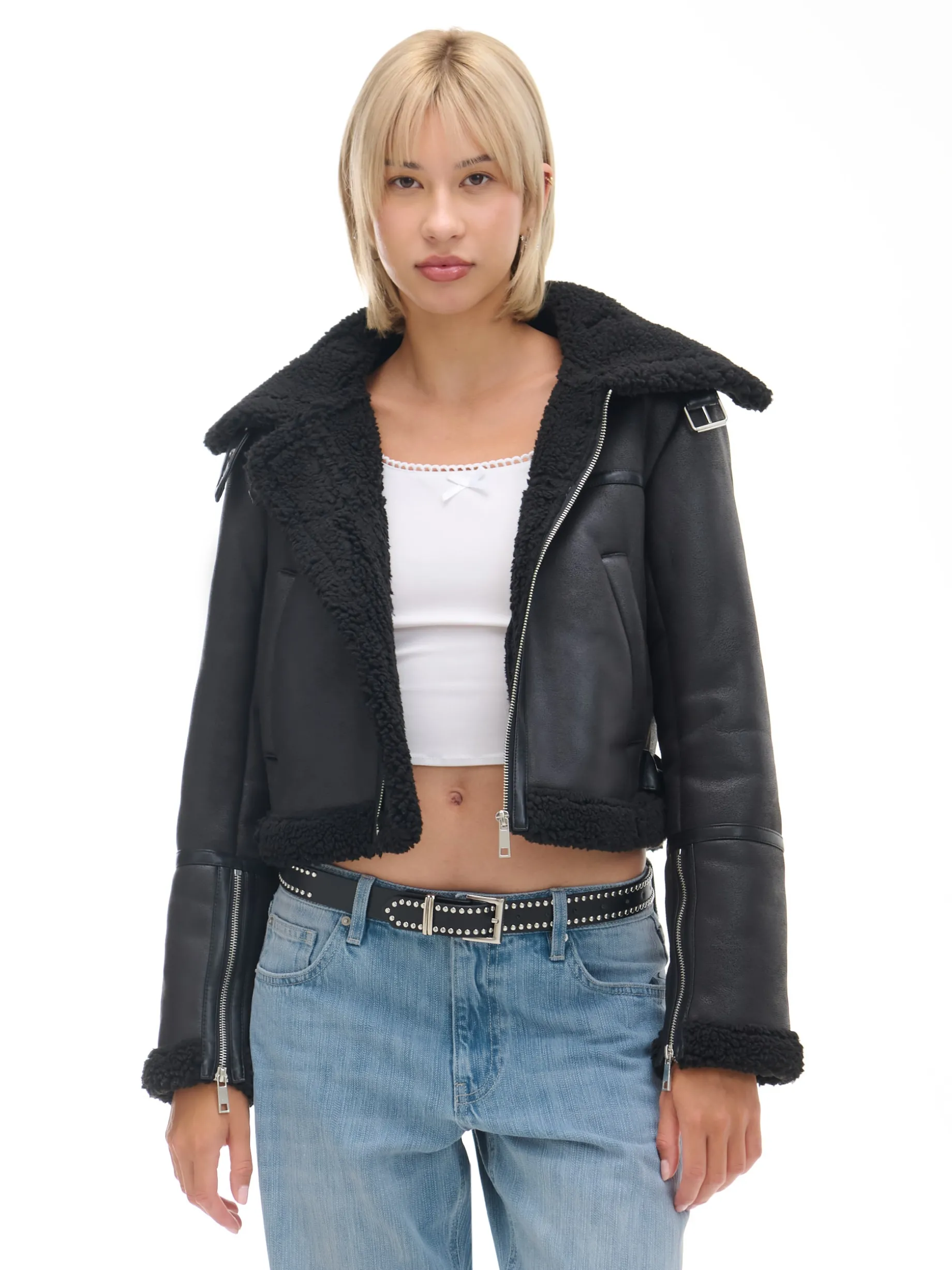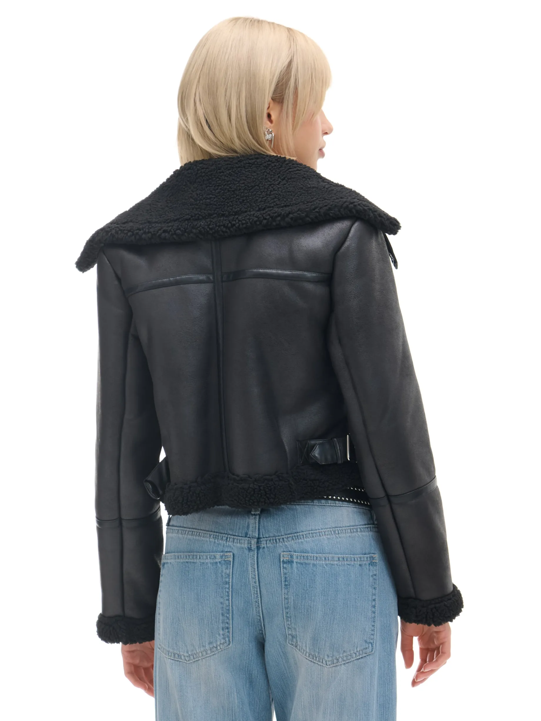Czarna kurtka biker z kożuchem