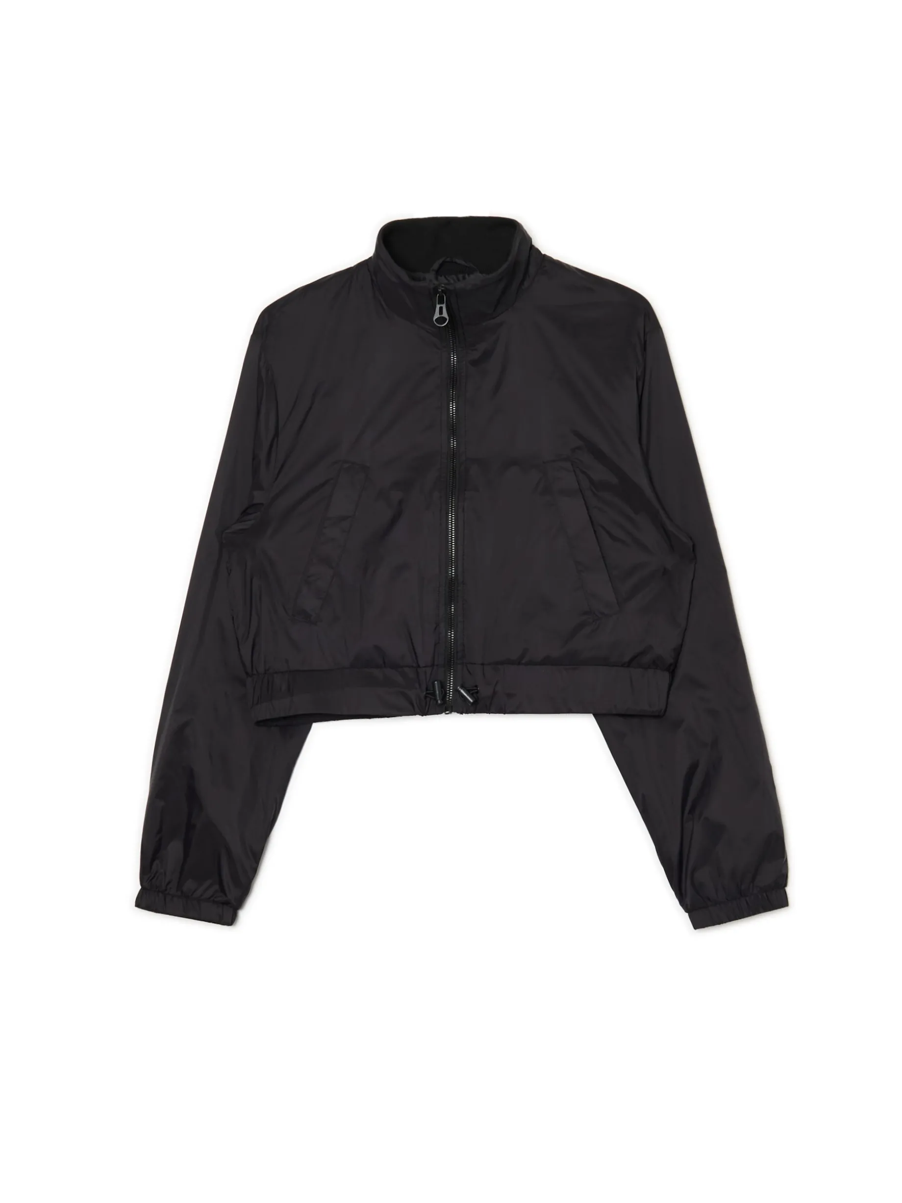 Damska kurtka typu bomber, uszyta z lekkiej, odpornej tkaniny. Idealna na sezon przejściowy. basicowa kurtka typu bomber regularny krój zapinana na zamek na całej długości regulacja w pasie za pomocą sznurka ze stoperem dwie kieszenie kołnierz w formie stójki, wyłożony ściągaczem Wzrost modelki: 172 cm