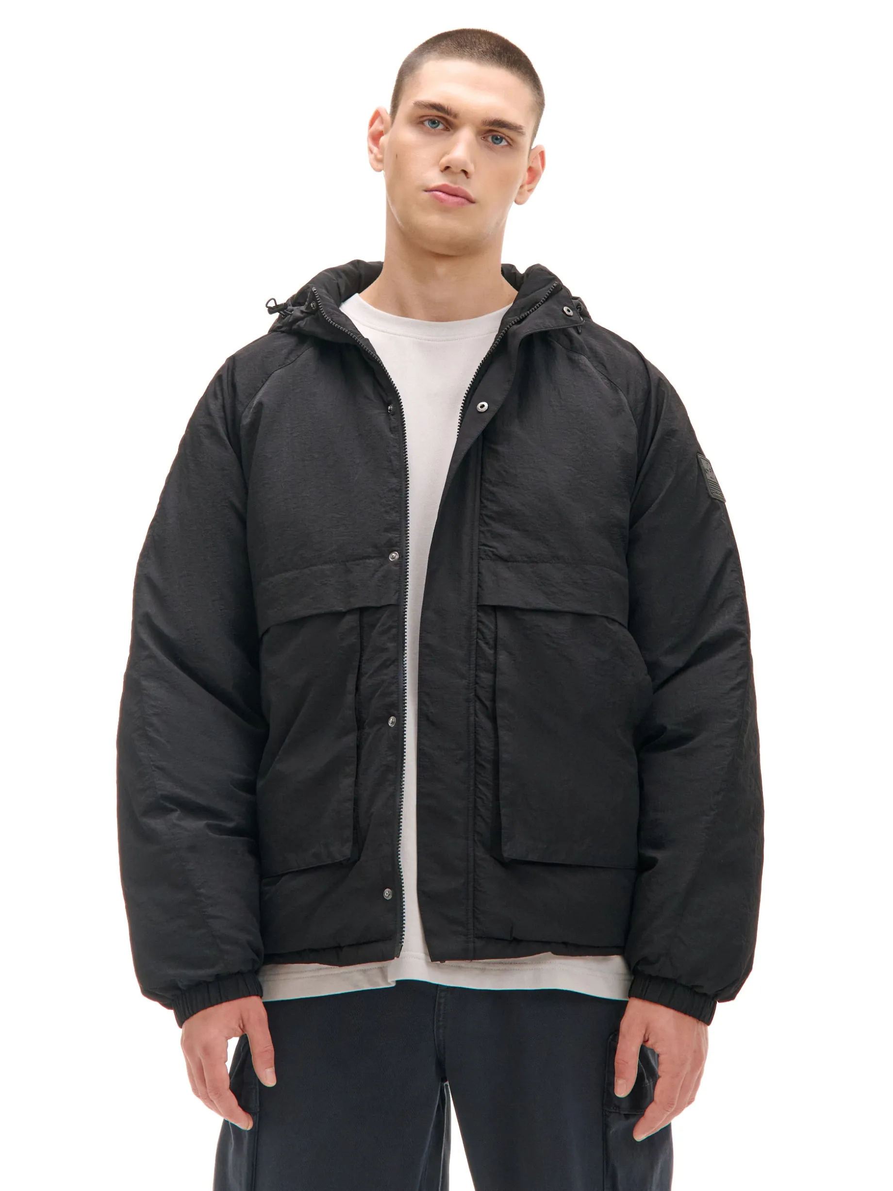 Kurtka z kapturem o swobodnym fasonie, wykonana z kreszowanej tkaniny z delikatnym ociepleniem. Raglanowa kontrukcja zapewnia swobodę ruchów, a kieszenie z zatrzaskami – komfort przechowywania swoich rzeczy. Świetny casual na sezon przejściowy. uszyta z gładkiej tkaniny prosty krój wewnątrz pikowana podszewka lekkie ocieplenie kurtka zapinana na zamek i zatrzaski praktyczny kaptur ze stójką, regulowany gumką ze stoperami swobodne, raglanowe rękawy dwie duże, funkcyjne kieszenie z zapięciem na napy wewnątrz kieszeń zapinana na rzep ściągacz tunelowy ze stoperami na dole PROTECTION LEVEL 3rn Kurtka uszyta z tkaniny z większym ociepleniem, której właściwości zapewnią Ci nie tylko ochronę przed wiatrem i deszczem, ale też niskimi temperaturami.