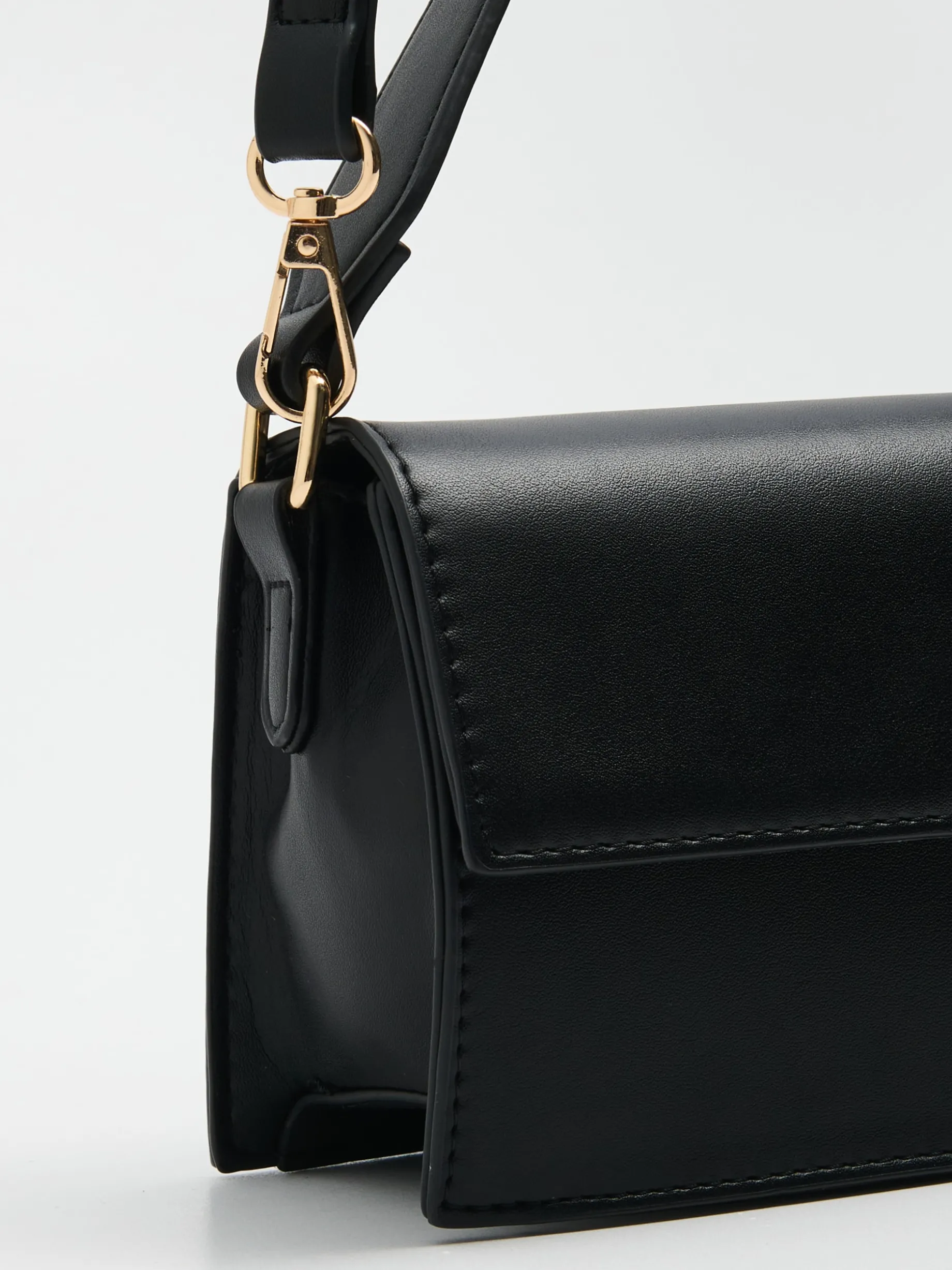 Damska mała torebka uszyta z mieszanki tkanin w kolorze czarnym. Wyposażona w praktyczne zapięcie na magnes i dodatkową kieszeń z zamkiem. Możesz ją nosić w ręku lub na ramieniu, dzięki dodatkowemu paskowi z regulacją. Uniwersalna i szykowna! mała torebka typu camera bag wykonana z łączonych materiałów zapięcie na klapę z magnesem pasek w zestawie dodatkowy pasek z regulacją długości wewnątrz kieszeń zapinana na zamek
