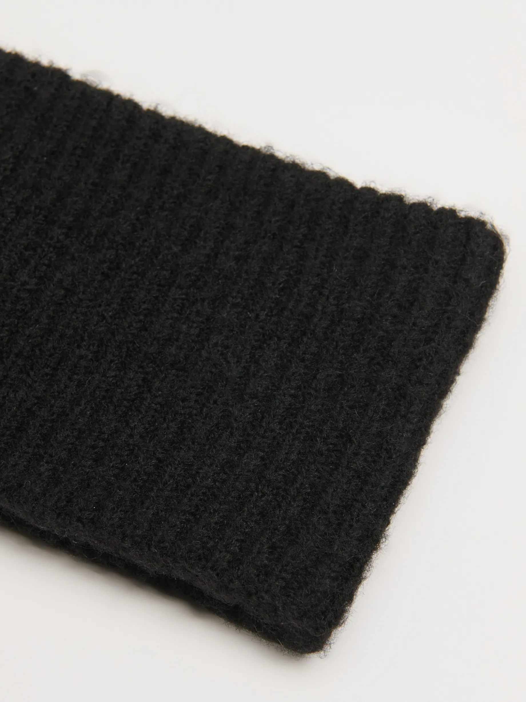 Damska opaska uszyta z miękkiej mieszanki dzianin w kolorze czarnym. Stylowy i ciepły item na okres jesienno-zimowy.