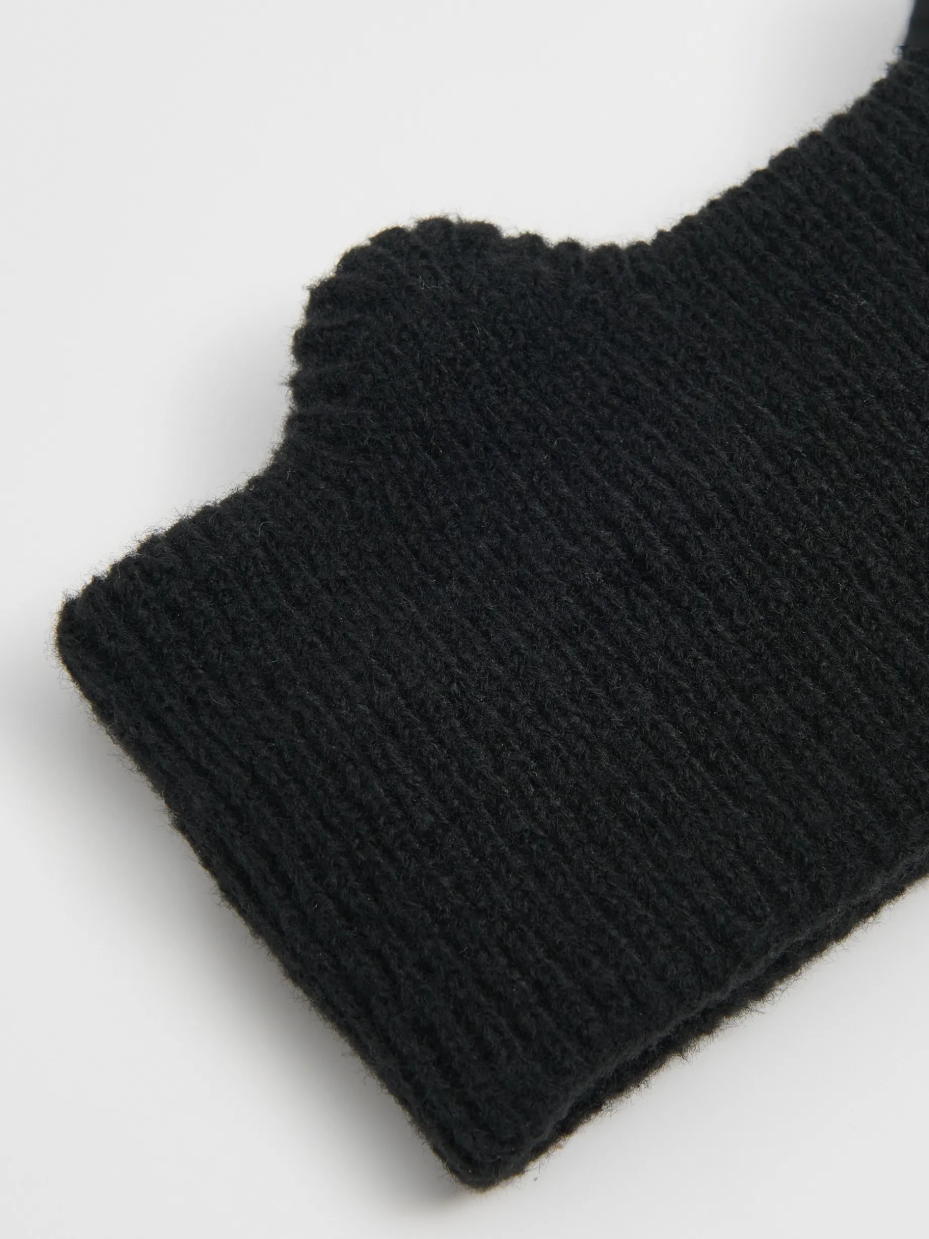 Zimowa opaska na głowę uszyta z przyjemnej w dotyku dzianiny w kolorze czarnym. Wyróżnikiem tego modelu są urocze uszy na przodzie.