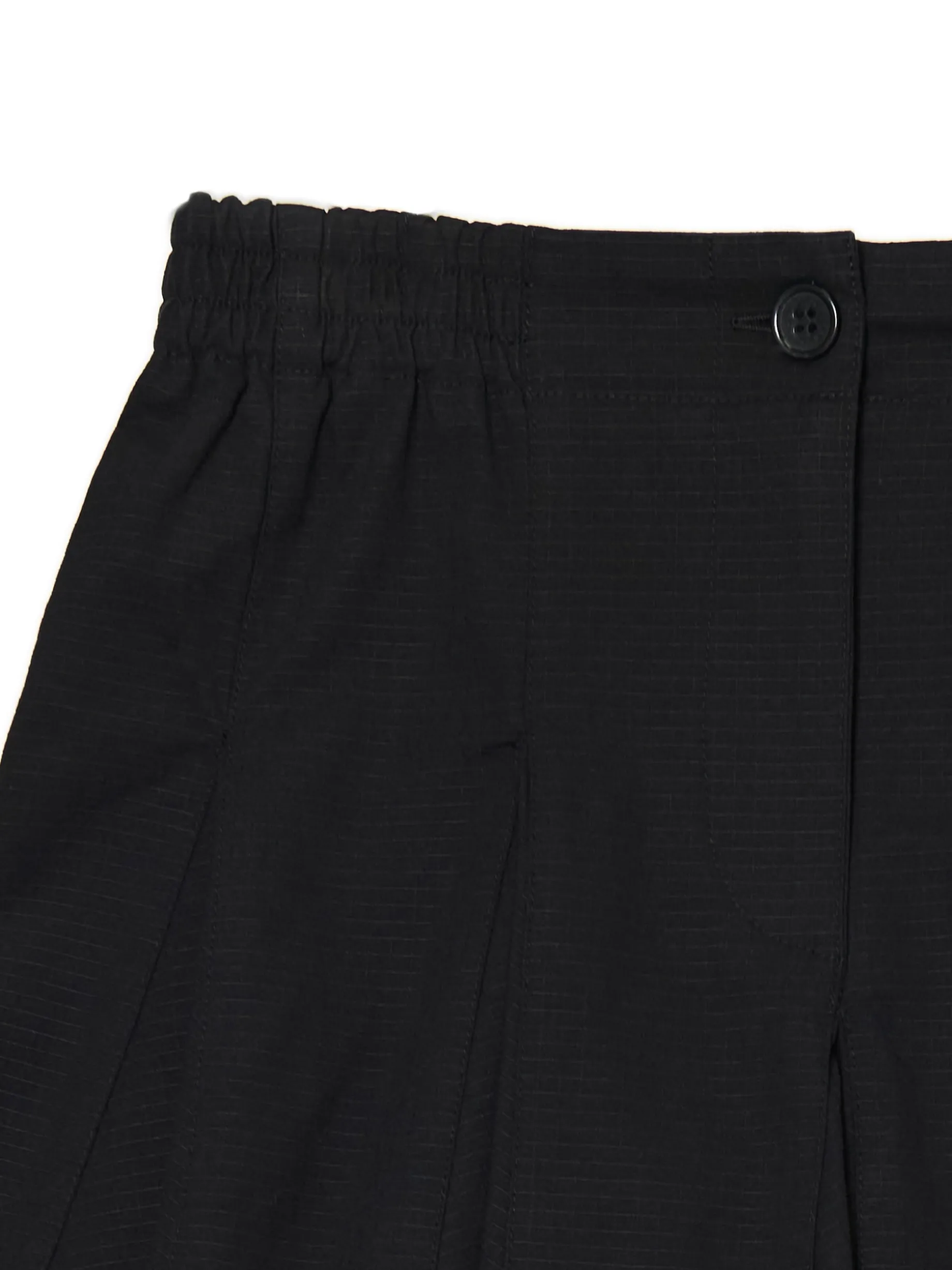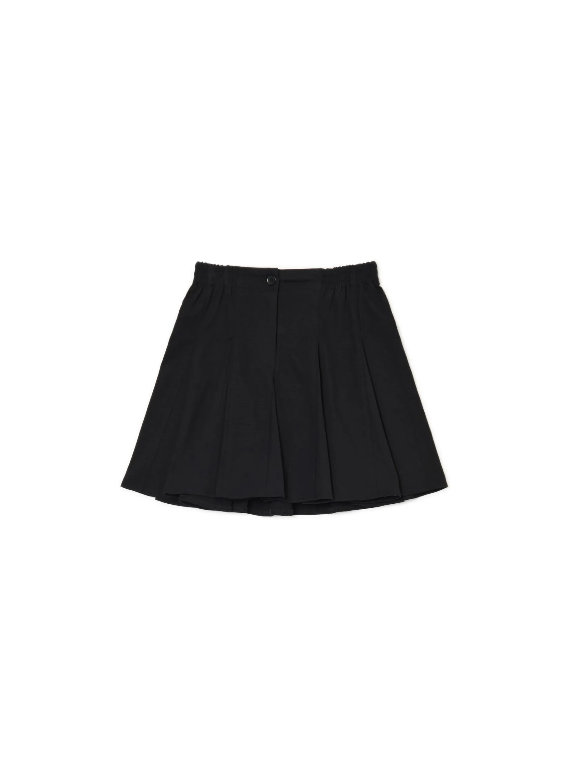 Damska spódnica o długości mini, uszyta z materiału o dużej zawartości bawełny w kolorze czarnym. Wyjątkowy model z dodatkowymi wstawkami dla zwiększenia komfortu ruchu. dzianinowy materiał z bawełną długość mini zapięcie na zamek i guzik w pasie od wewnątrz wszyta gumka