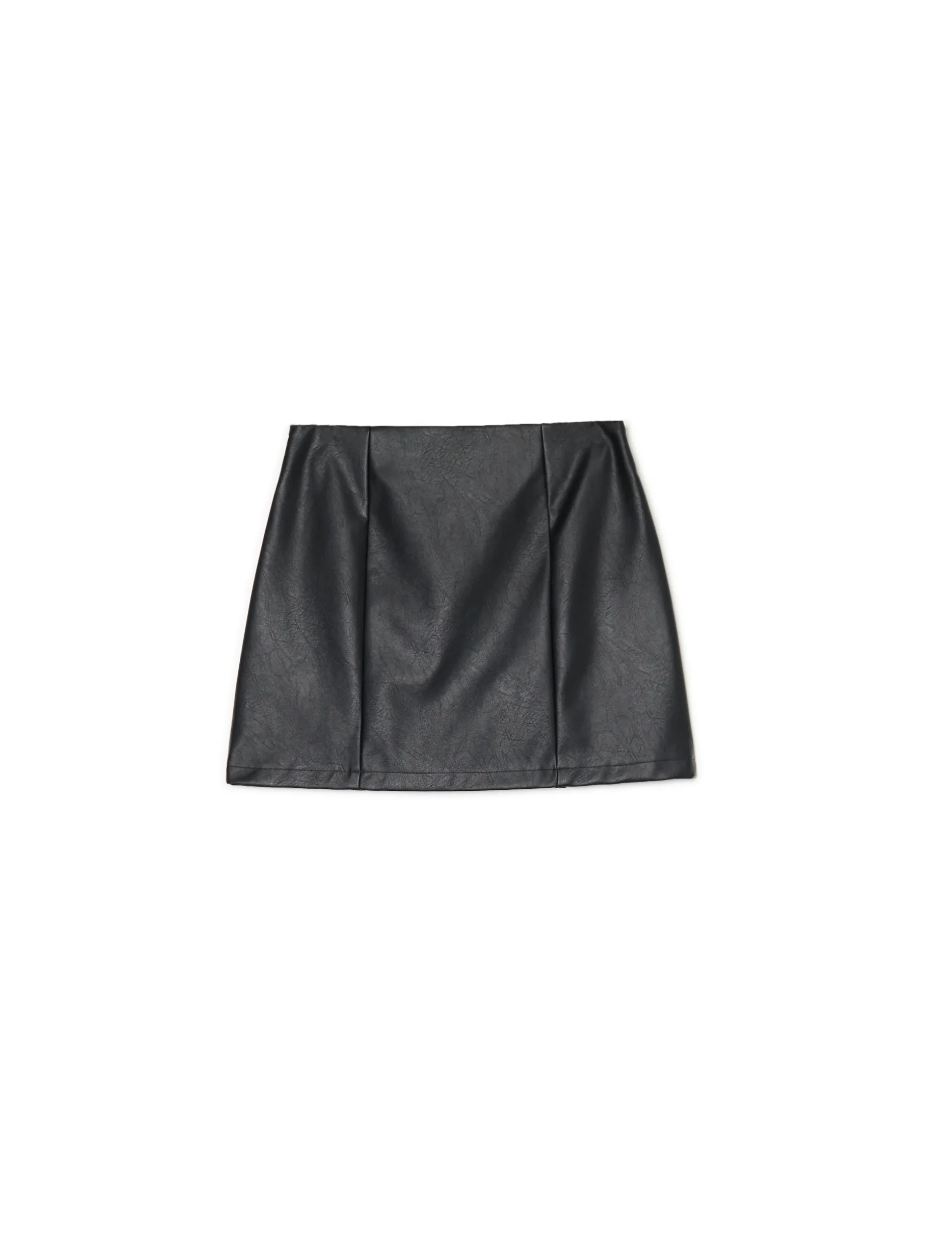 Krótka czarna spódnica, uszyta ze sztucznej skóry. Idealna dla fanek stylu retro! kryty zamek z boku dwa rozcięcia z przodu krótki, dopasowany krój Wzrost modelki: 177 cm