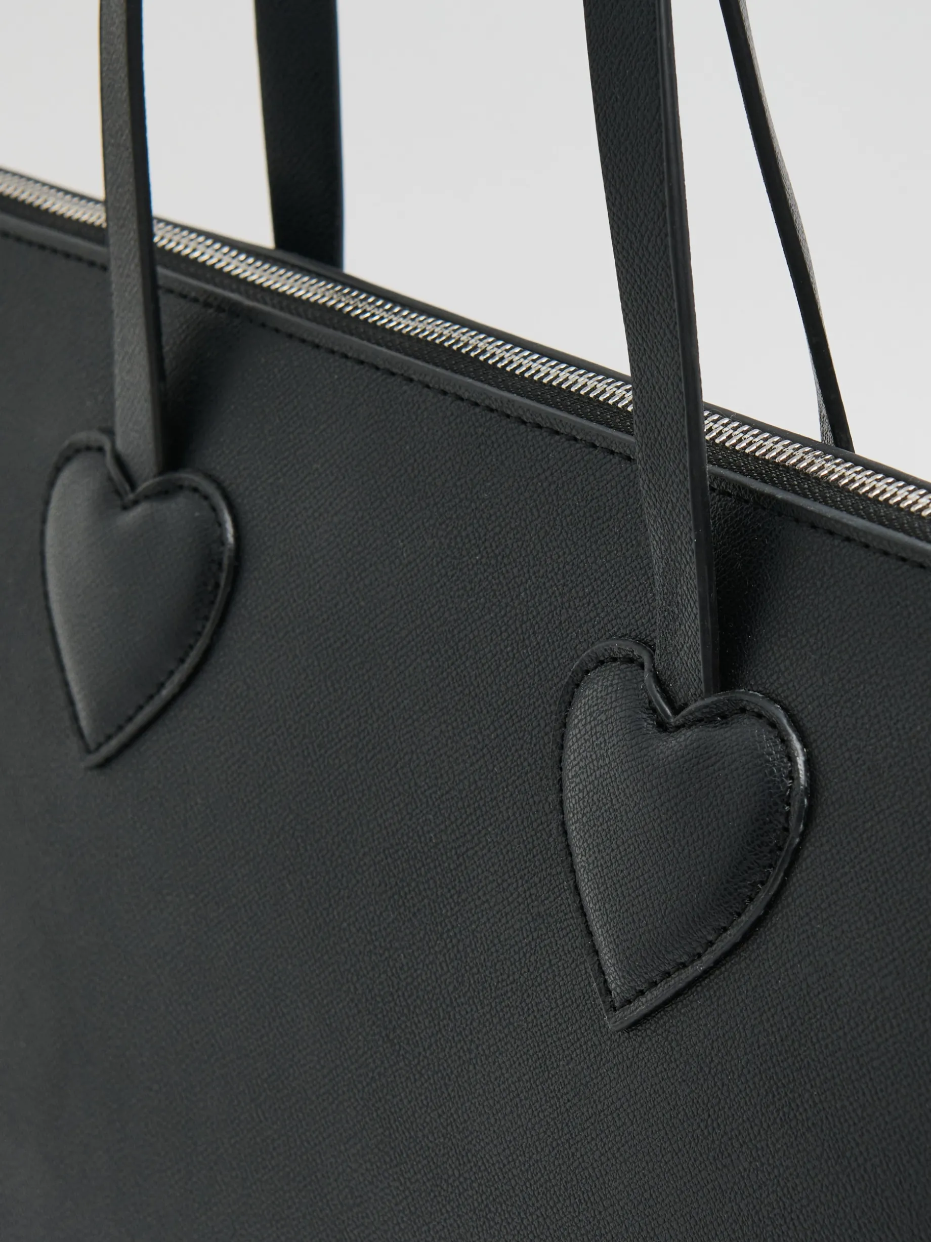 Damska duża torebka typu shopper, wykonana z łączonych materiałów. Pojemna główna komora i dodatkowa kieszeń na zamek pomieści wszystkie potrzebne Ci rzeczy. torba o klasycznym fasonie shopper dwa uchwyty główna komora z zapięciem na zamek wewnątrz kieszeń zapinana na zamek ozdobne naszywki w kształcie serca