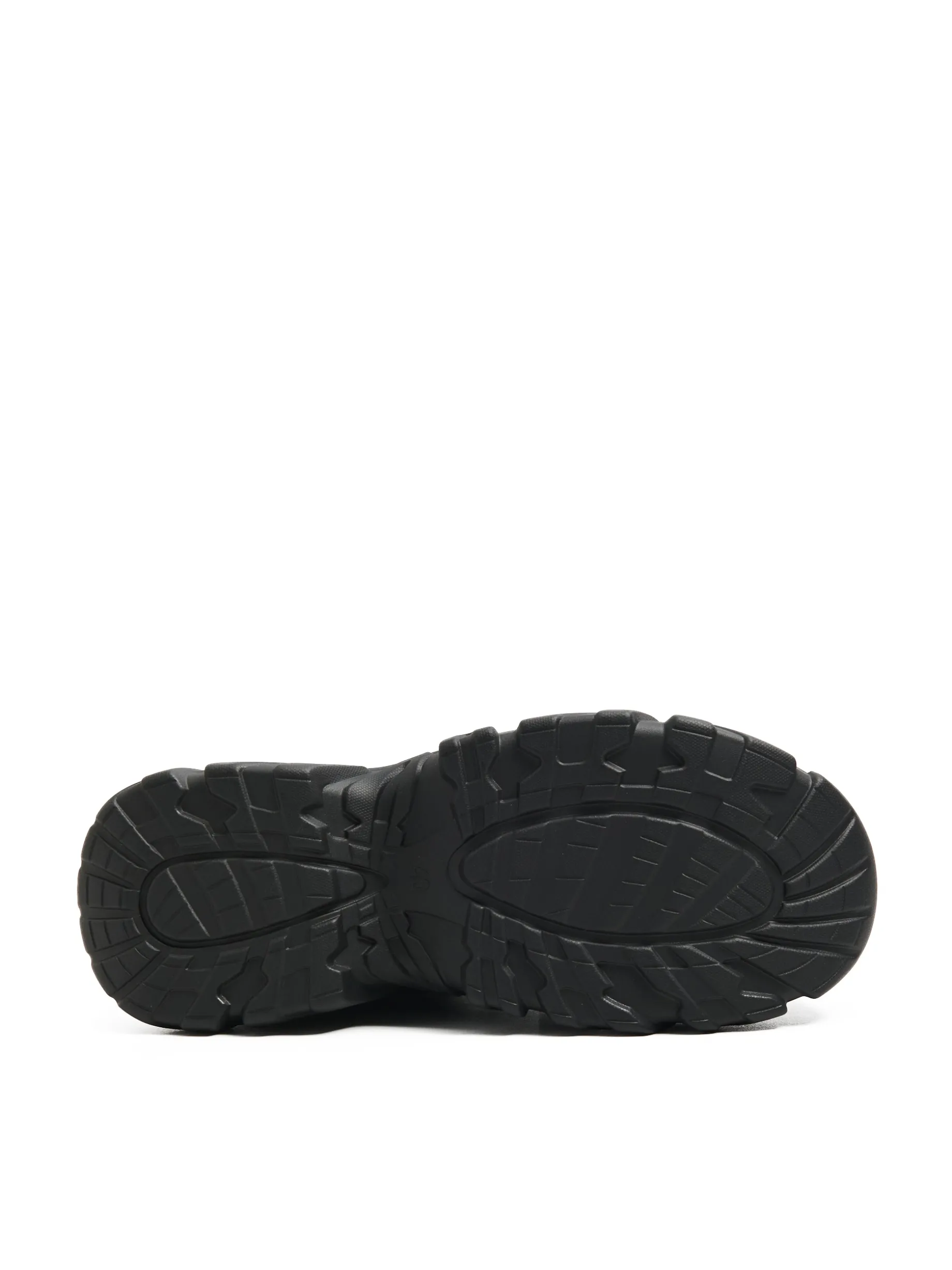 Przejściowe damskie buty za kostkę typu chunky, wykonane z imitacji skóry. Sportowy fason, masywna podeszwa i wygodne zapięcie na rzepy. Na przodzie dekoracyjna naszywka z gwiazdą. Idealne na sezon jesienno-zimowy! przejściowe botki za kostkę cholewka z imitacji skóry masywna podeszwa solidny język usztywniający kostkę zapięcie na rzepy brandowy wzór na wkładce