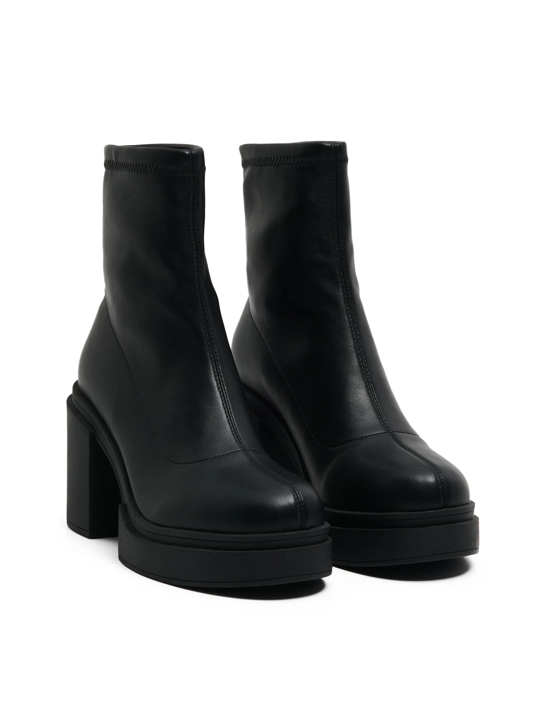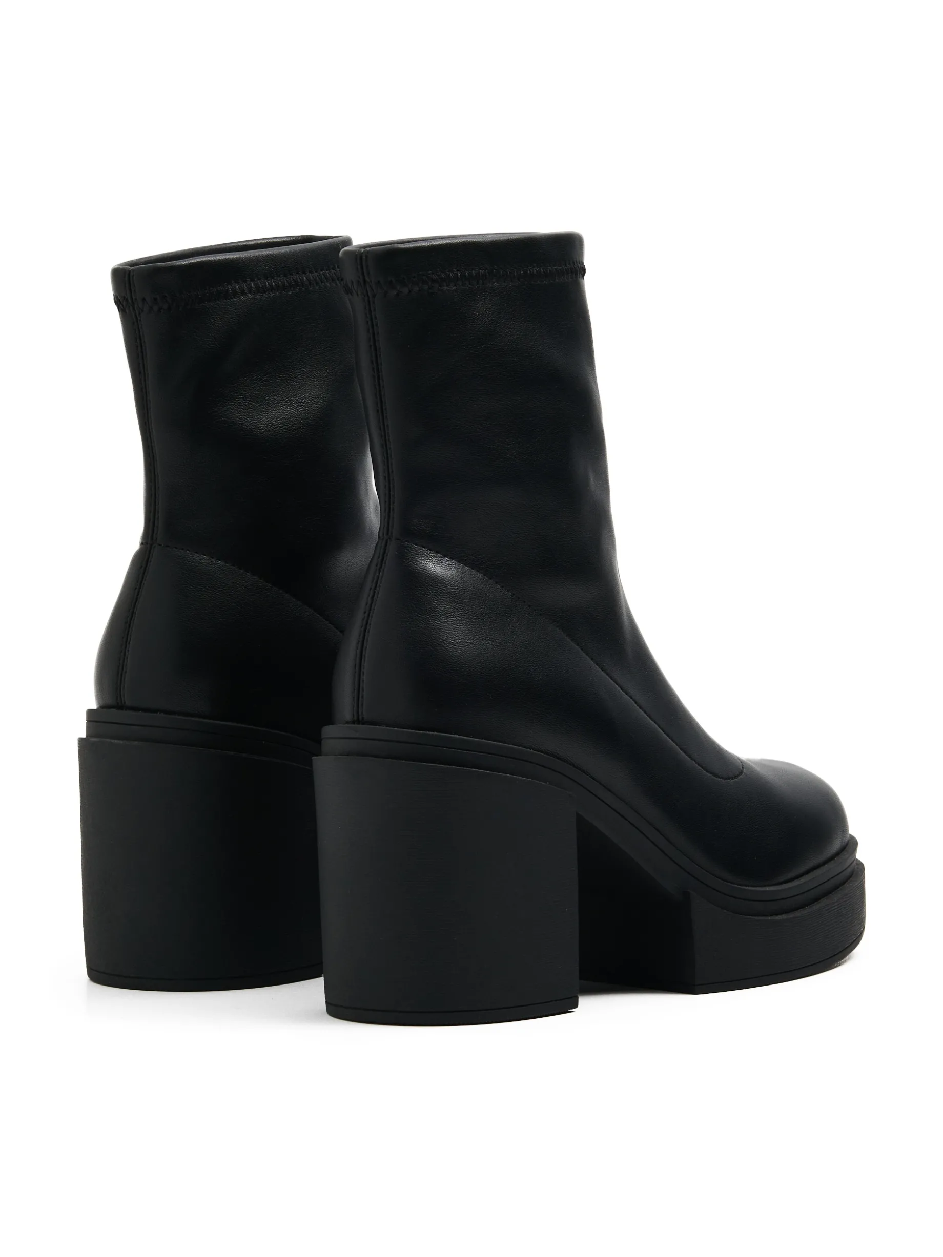 Polecamy te damskie botki uszyte w czarnym kolorze z wysoką cholewką. Są stworzone zadań specjalnych, dzięki wytrzymałemu materiałowi ze sztucznej skóry. Poza tym genialnie prezentują się z długimi płaszczami i futerkami. botki za kostkę cholewka z imitacji skóry traperowa, masywna podeszwa i obcas obcas w formie słupka ozdobne przeszycia